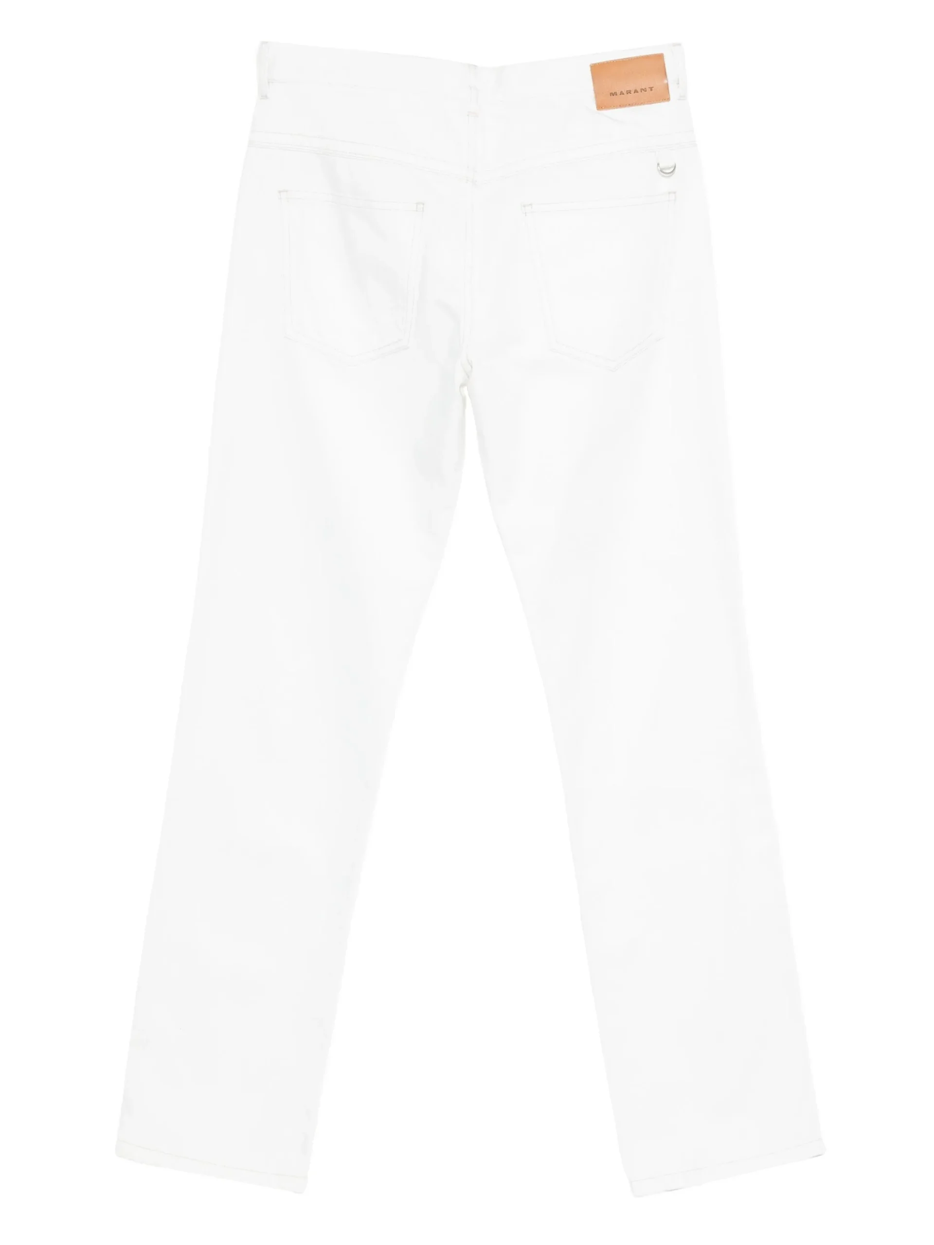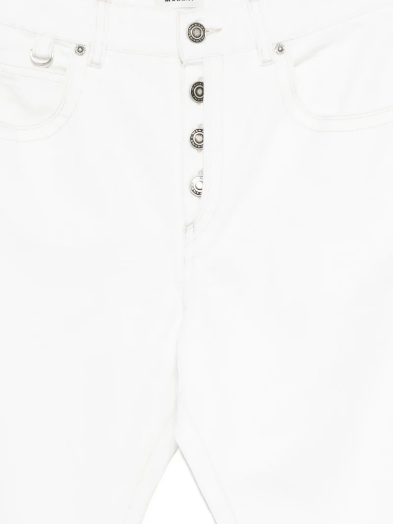Jeans Isabel Marant button-fly alb, inchidere cu nasturi, model clasic, croiala cu cinci buzunare si accesorii silver-tone.100% bumbac