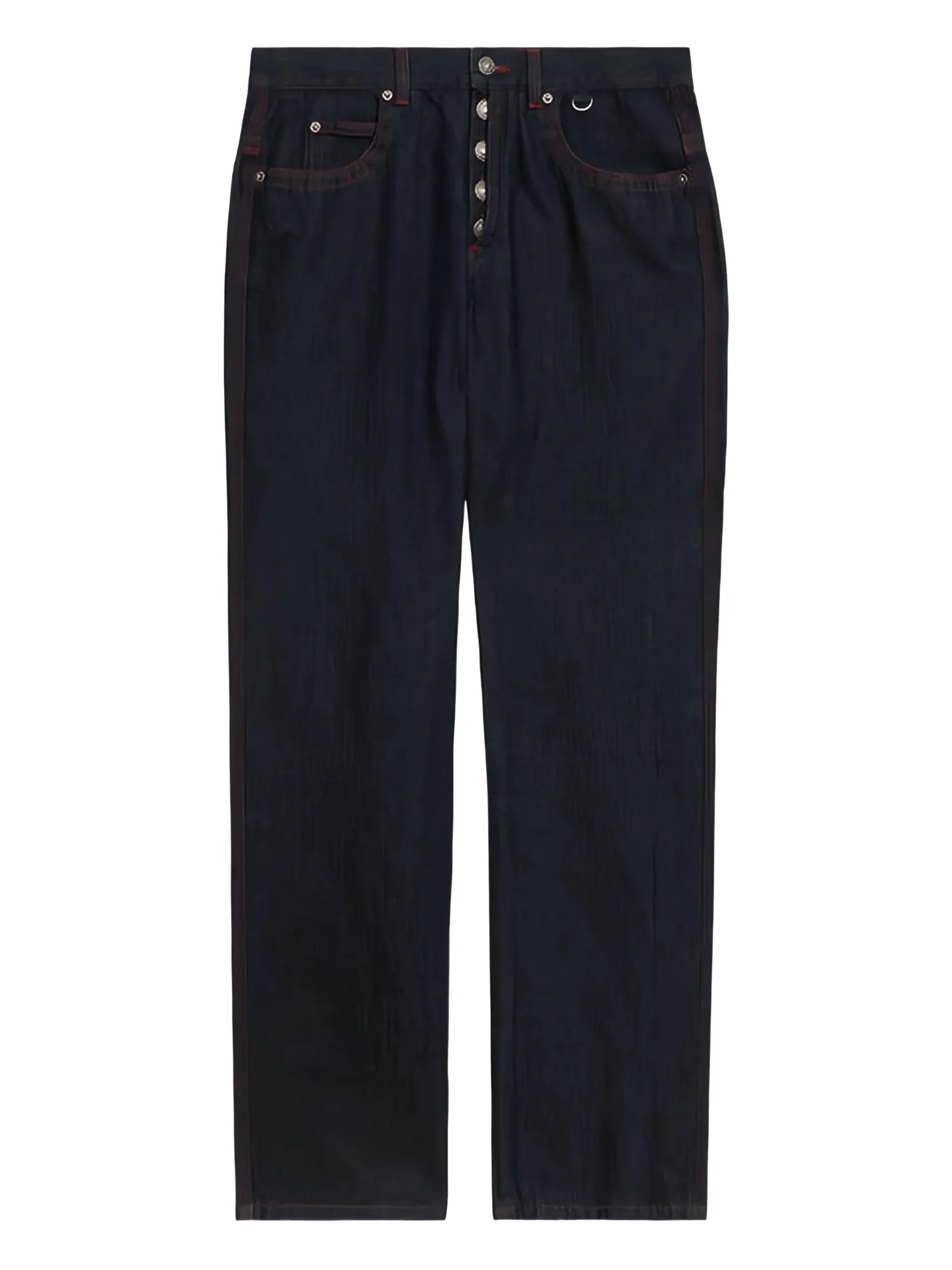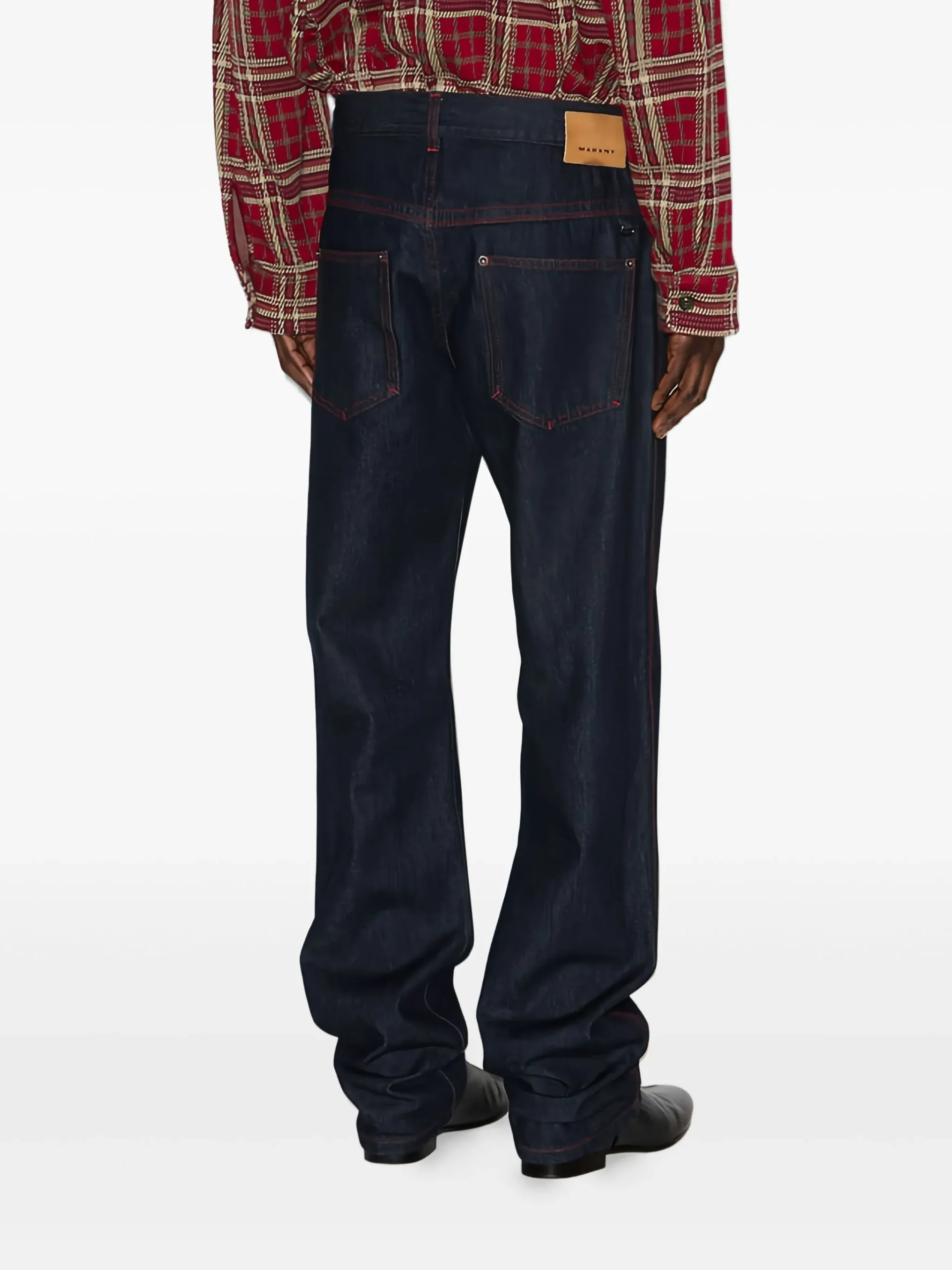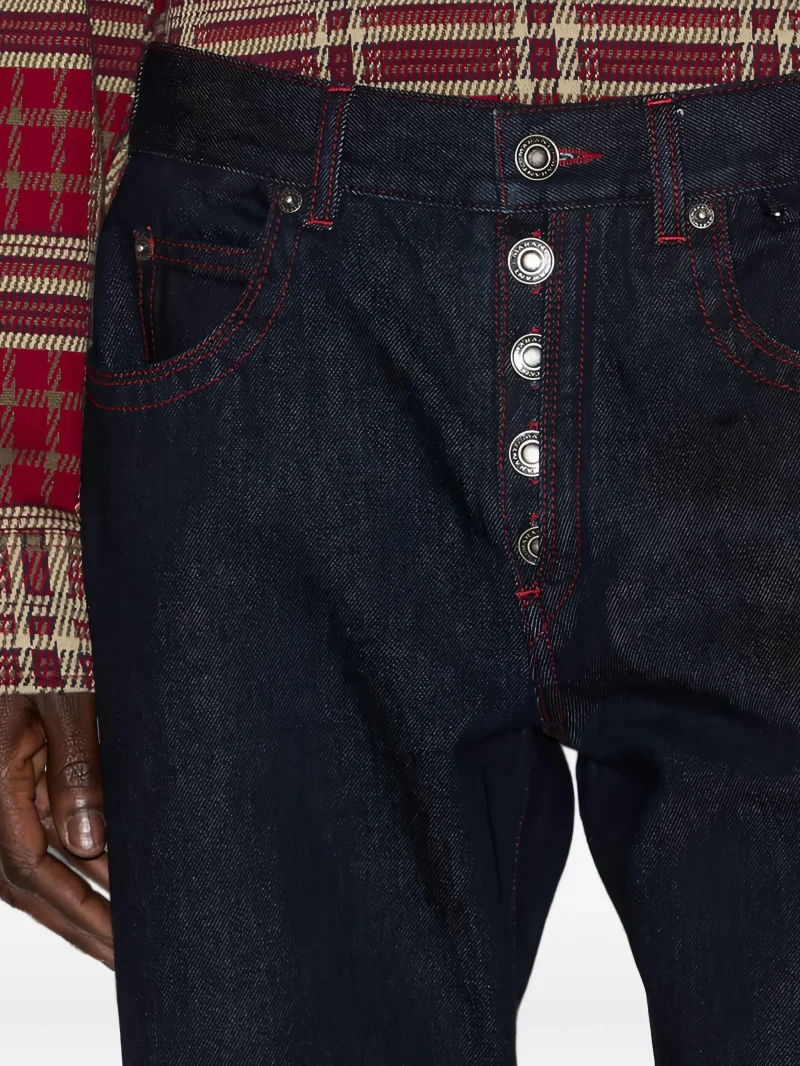 Jeans Isabel Marant Jeffrey albastru, din bumbac premium, inchidere cu nasturi, patch cu logo la spate si croiala dreapta.100% bumbac