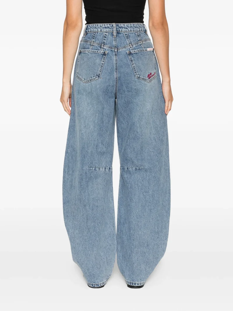 Jeans Self-Portrait seam-detail albastru, cu detalii cusaturi, model clasic cu cinci buzunare, logo pe buzunarul din spate si topstitching. 100% bumbac