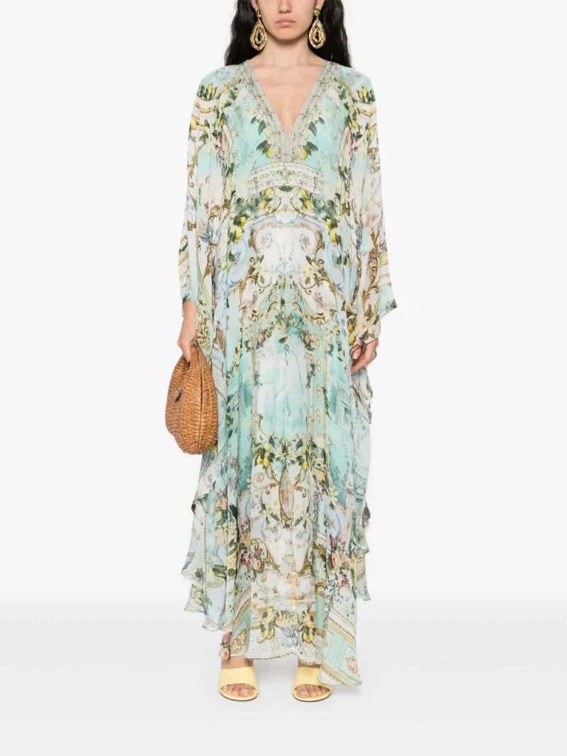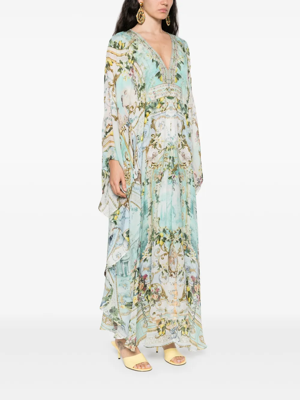 Kaftan maxi Camilla Graphic-Print Silk albastru