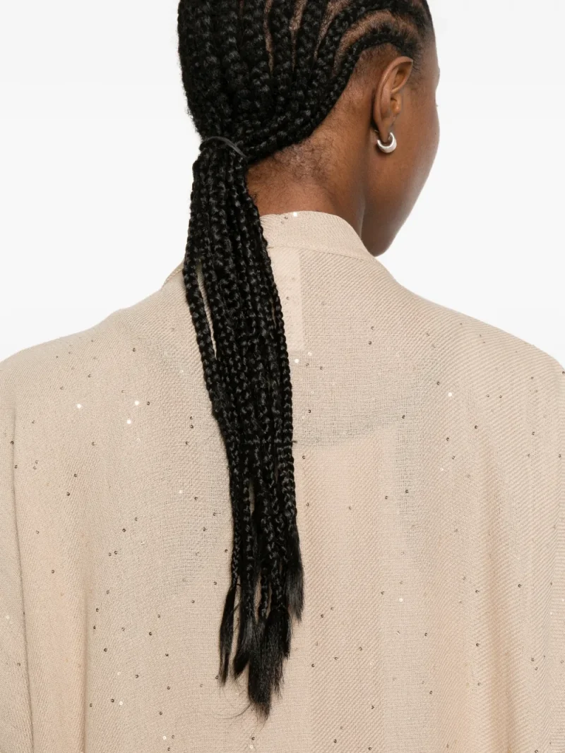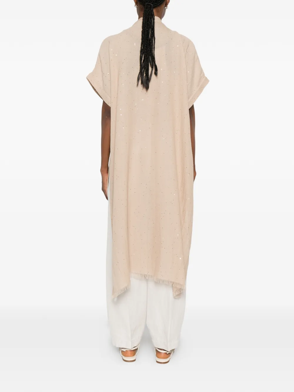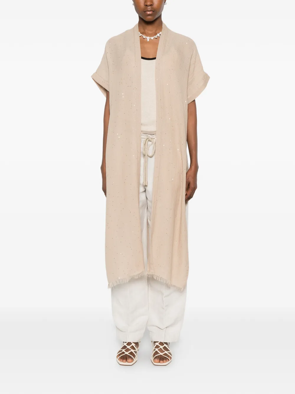 Kimono Peserico sequin-embellished fringed-edge bej