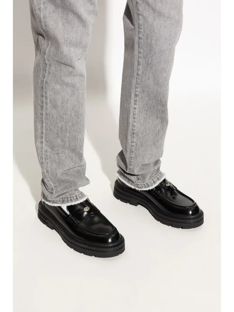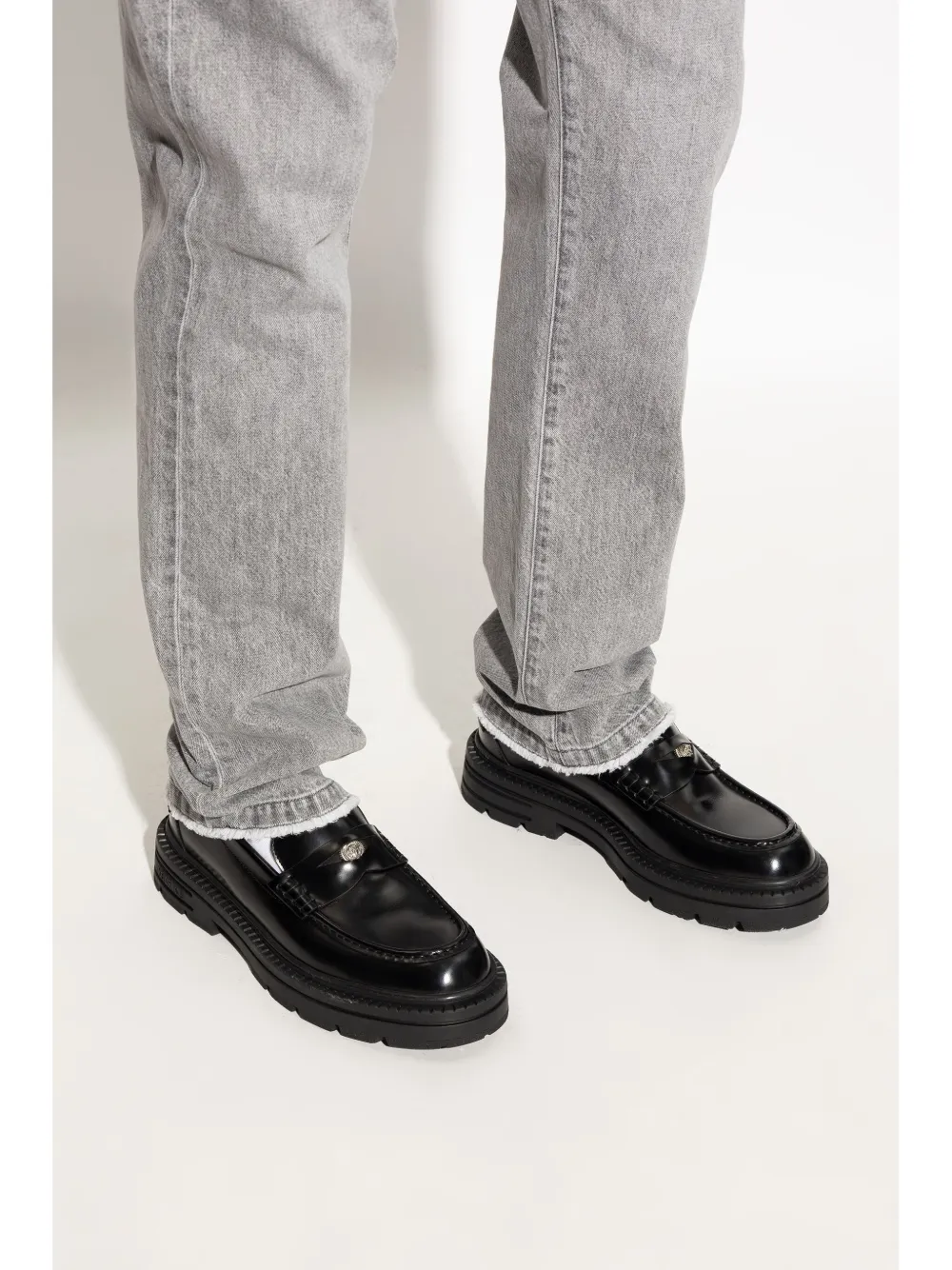 Loafers Versace Adriano negru, din piele, cu profil jos, logo metalic Medusa Gancini, captuseala din piele, bot rotunjit si talpa din cauciuc. 100% piele de vitel; 100% cauciuc; 100% piele de vitel.