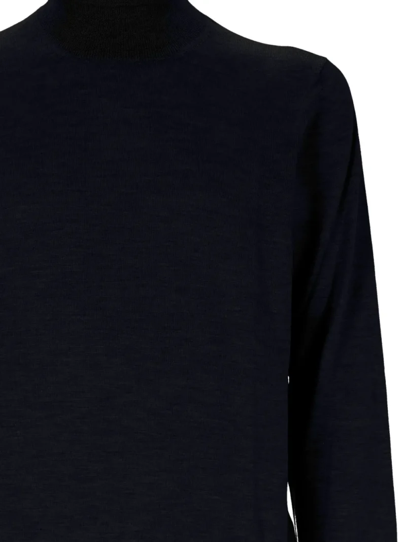Maleta Gran Sasso Roll-Neck bleumarin, din matase si lana premium , cu guler inalt, maneci lungi, mansete si tiv elastice ribbed. Potrivit pentru sezonul toamna/iarna. 30% matase; 70% lana.