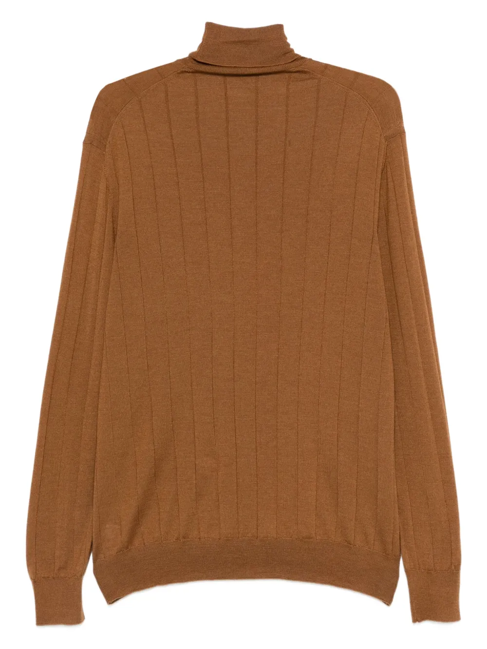 Maleta Gran Sasso Wool-Blend maro, din lana premium, cu guler inalt, maneci lungi, mansete elastice, dungi in tesatura si tiv ribbed. Potrivit pentru sezonul primavara/vara. 70% lana; 30% matase.