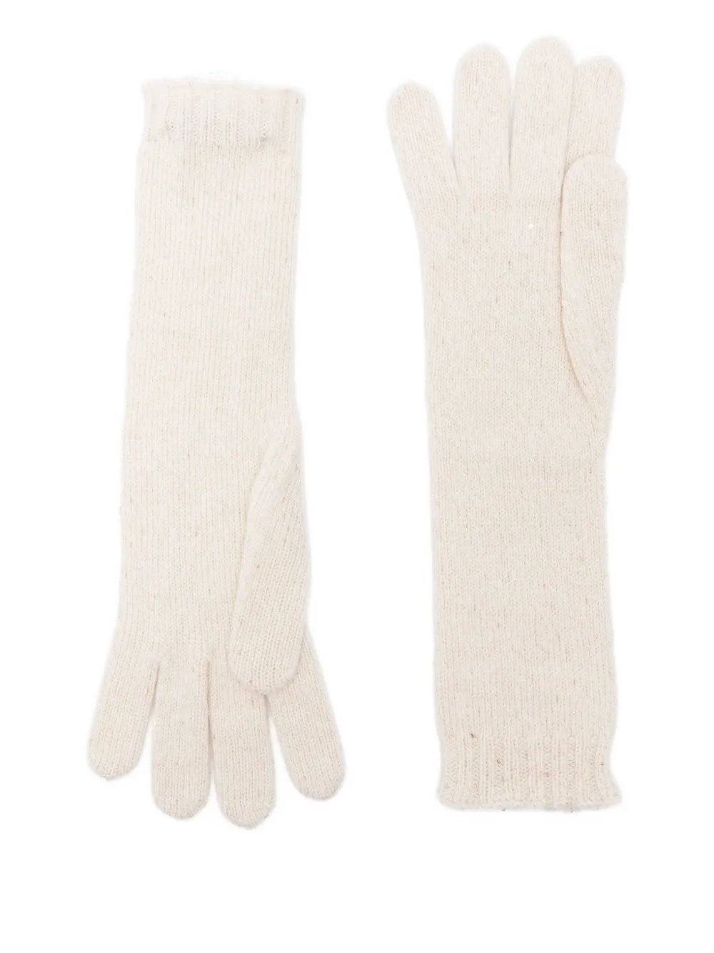 Manusi Gran Sasso Cable-Knit bej, din lana, cu tesatura cable knit si lungime medie. 67% lana; 28% casmir; 3% fire metalice; 2% nylon.