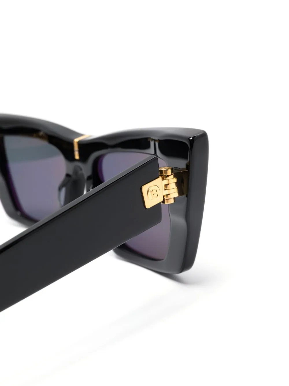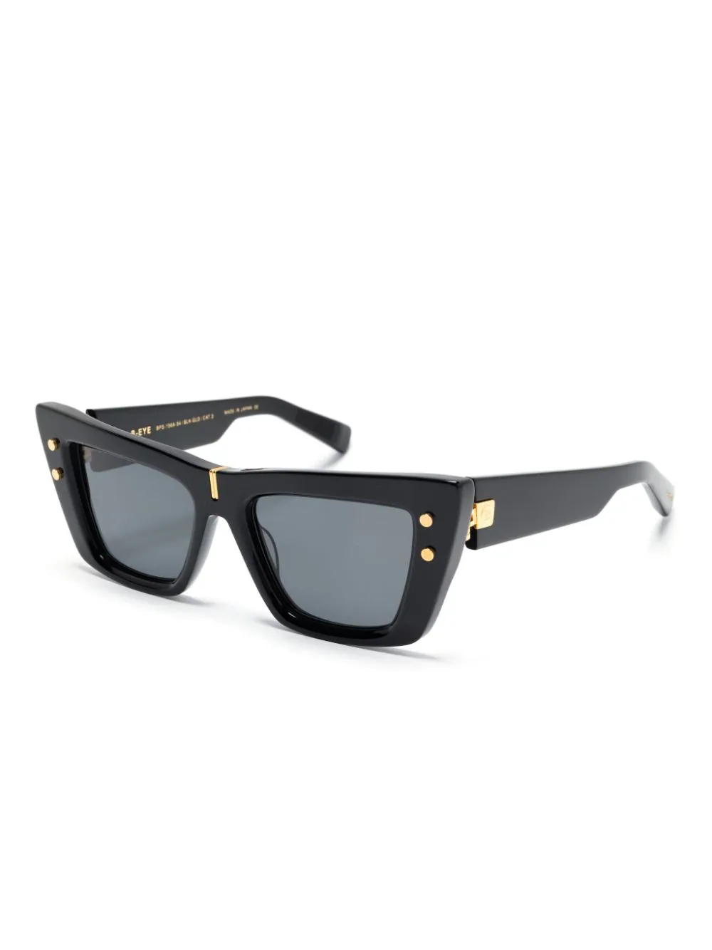 Ochelari de soare Balmain Eyewear B-Eye Cat-Eye Frame negru, din acetat, cu forma ramei cat eye, lentile gri inchis, brate drepte cu logo metalic Balmain gravat pe exterior si varfuri curbate. 100% acetat. Acesti ochelari de soare vin insotiti de toc.