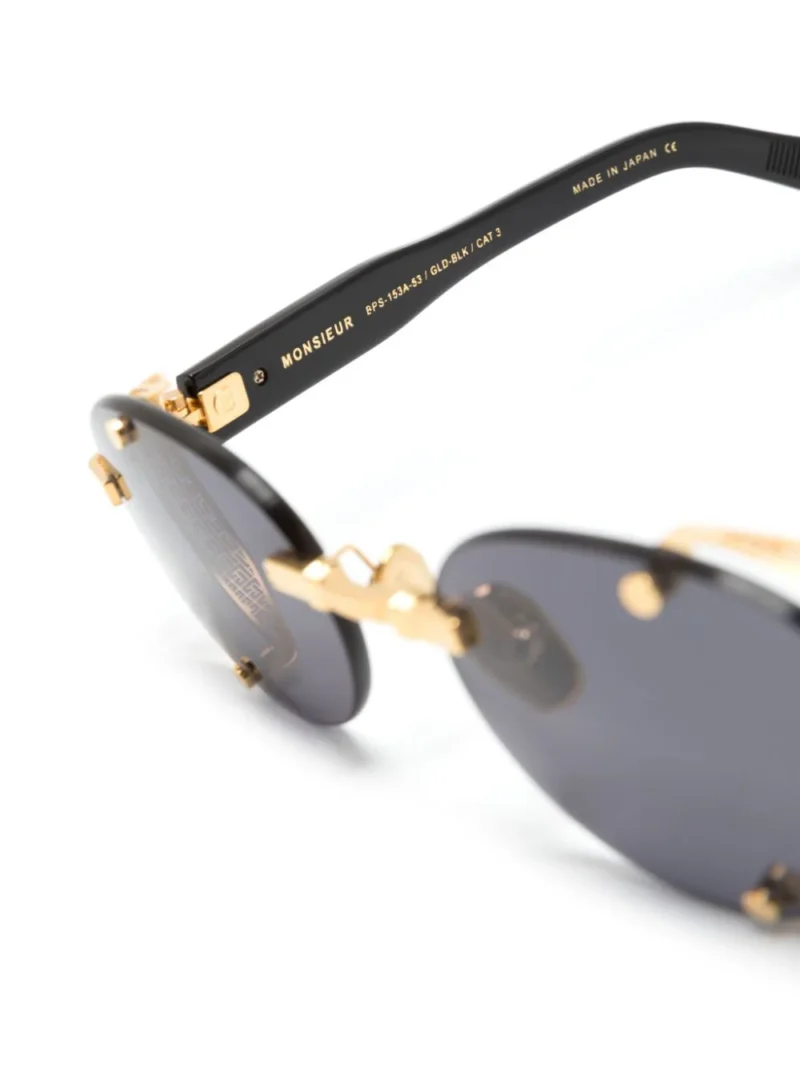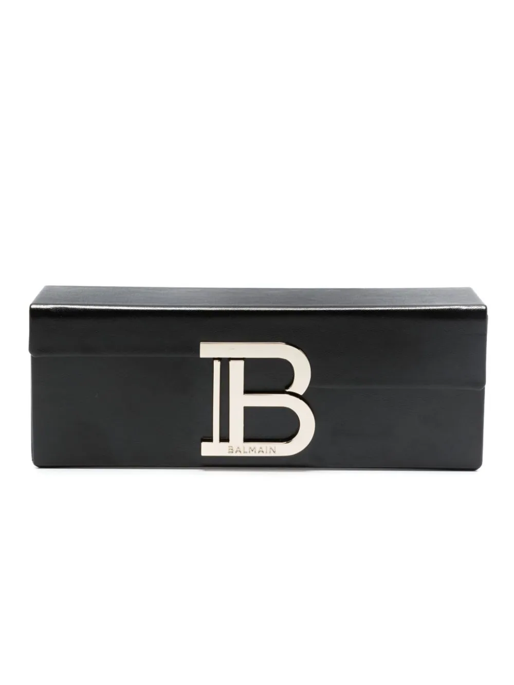 Ochelari de soare negri din titan si acetat, cu forma ramei ovala, lentile cu protectie UV, suporturi din silicon pentru nas, brate drepte cu logo metalic Balmain si varfuri curbate. 100% titan; 100% acetat. Acesti ochelari de soare vin insotiti de toc.