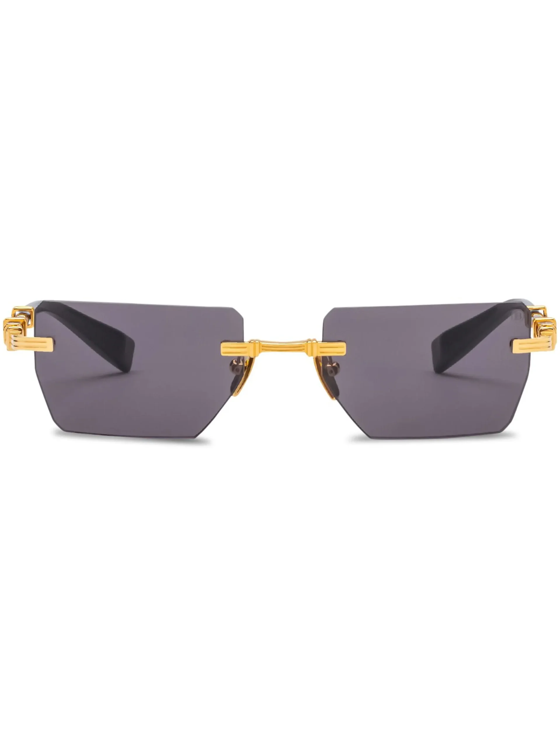 Ochelari de soare Balmain Pierre rimless multicolor din titan si acetat, cu forma ramei dreptunghiulara, suporturi din silicon pentru nas, brate drepte cu logo metalic Balmain si varfuri curbate. 100% acetat; 100% titan. Acesti ochelari de soare vin insotiti de toc.