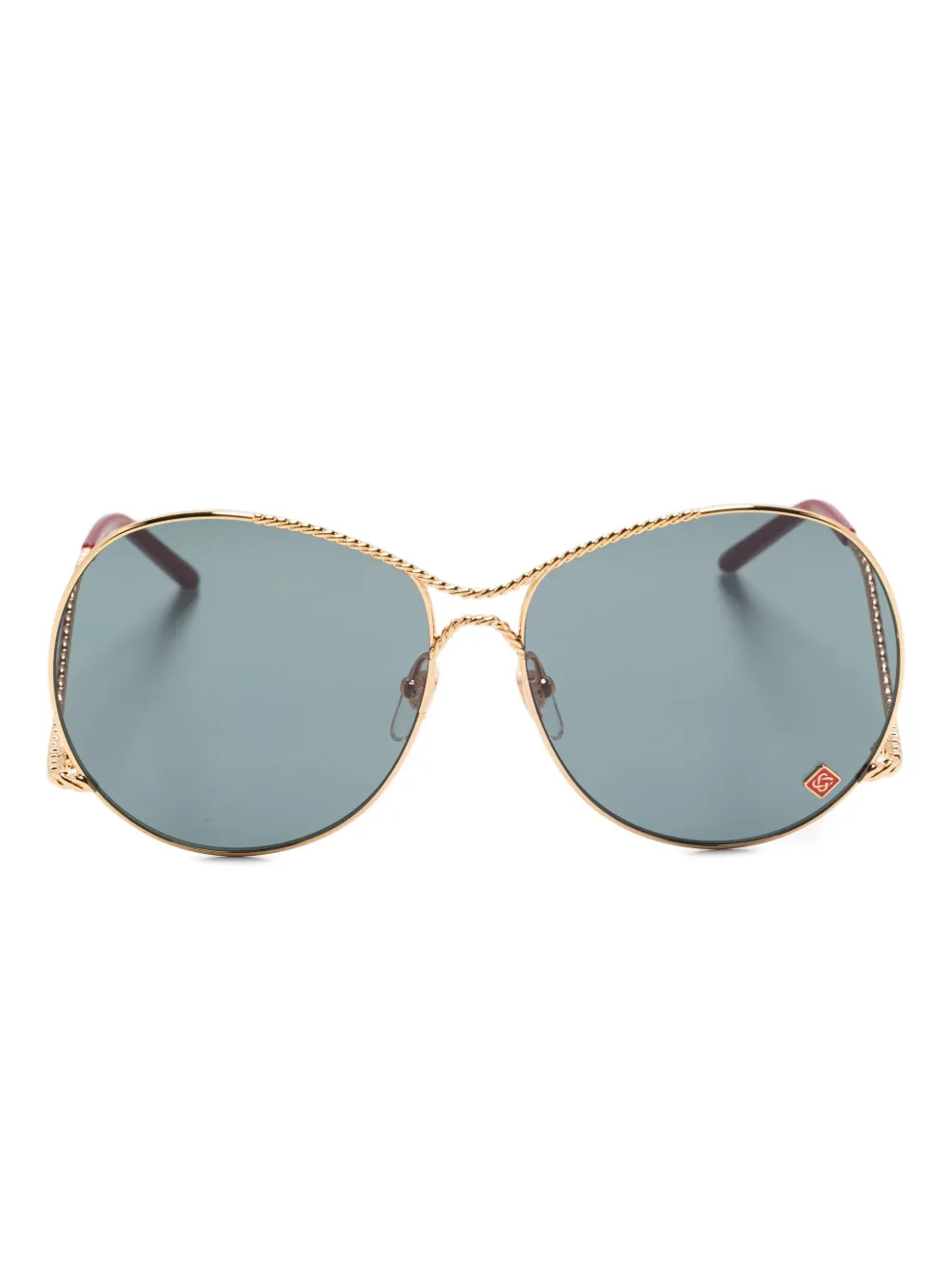 Ochelari de soare Casablanca Oversize-Frame verde, din acetat, cu rama supradimenasionata de culoare rose, lentile verzi cu logo aplicat, brate curbate si toc inclus. 100% plastic; 100% alama.
