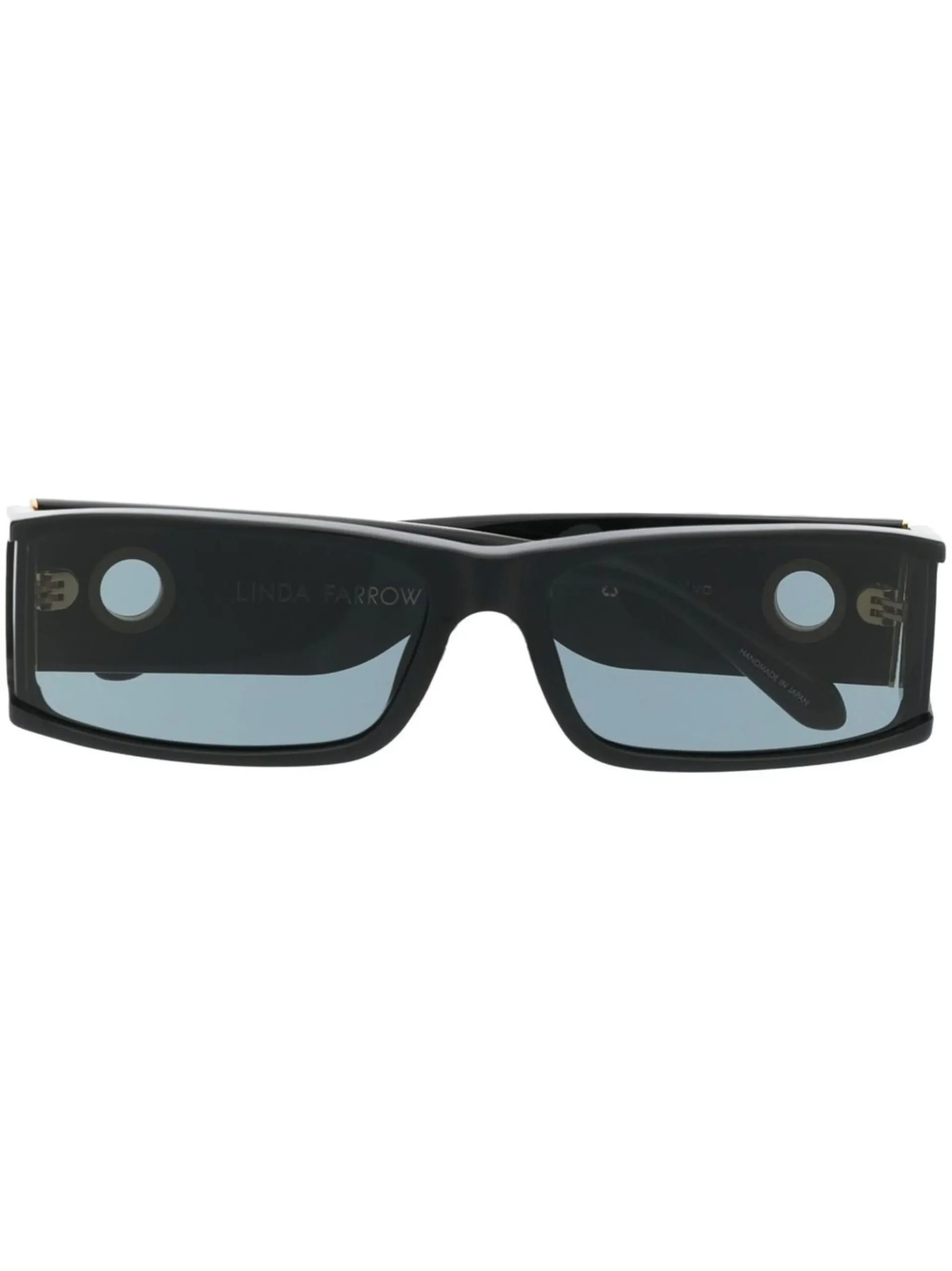 Ochelari de soare Linda Farrow Mya negri din acetat reciclat, cu forma ramei patrata, brate drepte cu logo Linda Farrow gravat. 100% acetat reciclat. Acesti ochelari de soare vin insotiti de toc.