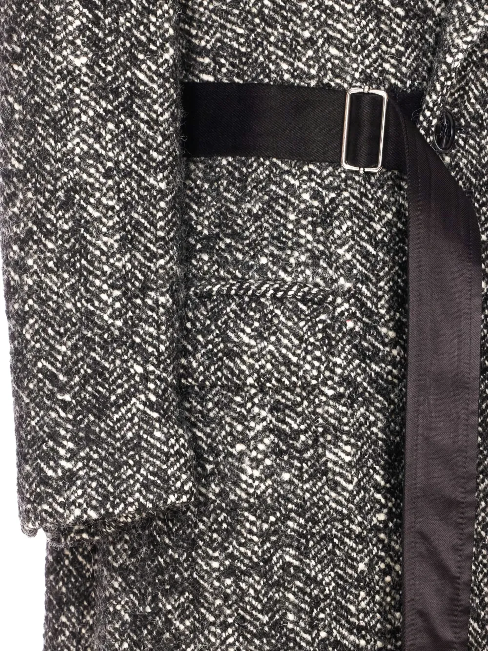 Palton Isabel Marant Herringbone Double-Breasted gri, realizat din lana, cu rever crestat, inchidere cu nasturi dubli, umeri conturati, maneci lungi, buzunare laterale, tesatura Herringbone, curea textila decorativa si tiv drept. Potrivit pentru sezonul toamna/iarna. 67% lana; 17% poliester; 16% acril.
