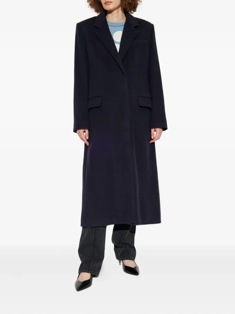 Palton Isabel Marant Virgin Wool bleumarin, realizat din lana, cu rever crestat, maneci lungi, inchidere cu nasturi ascunsi, buzunare laterale cu clapeta si tiv drept. Potrivit pentru sezonul toamna/iarna. 75% lana; 20% poliamida; 5% casmir.