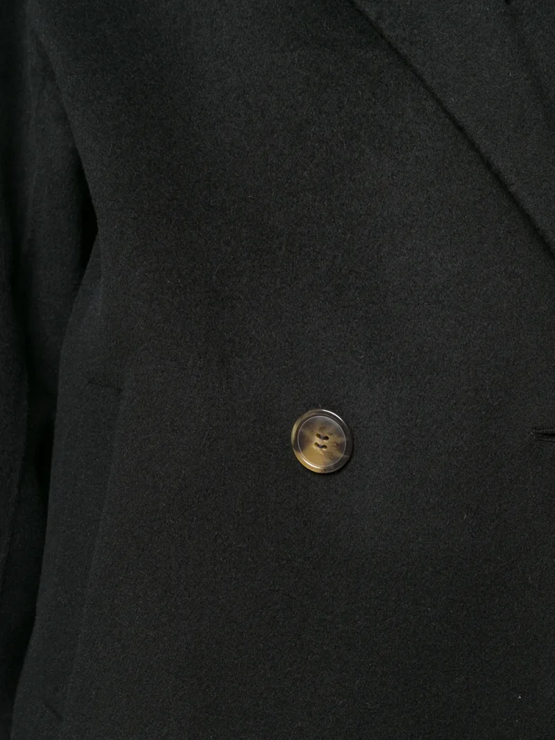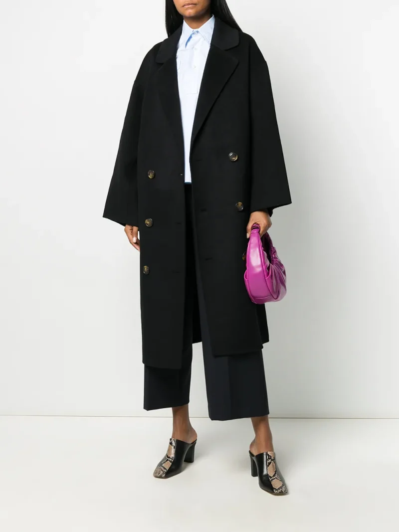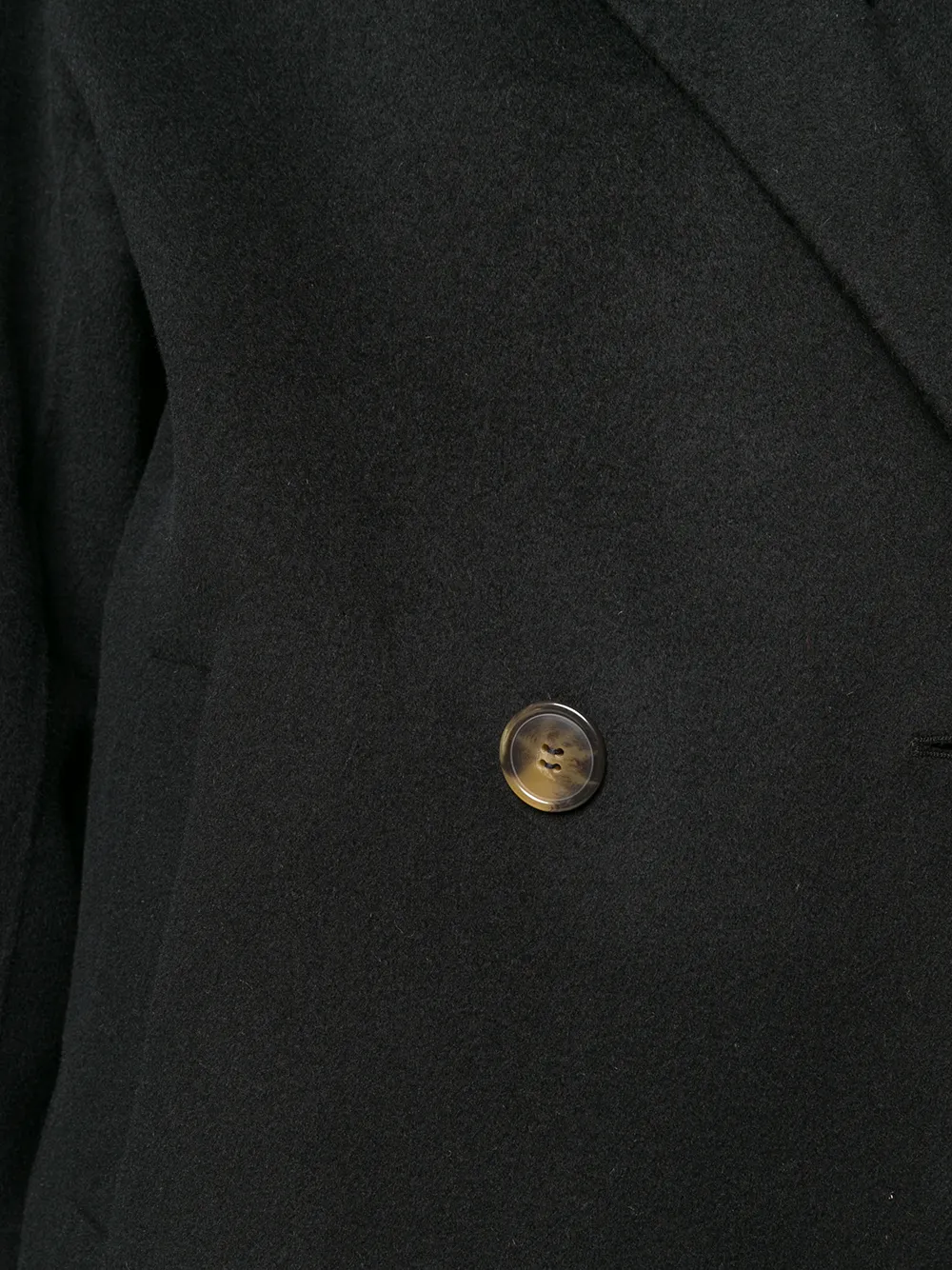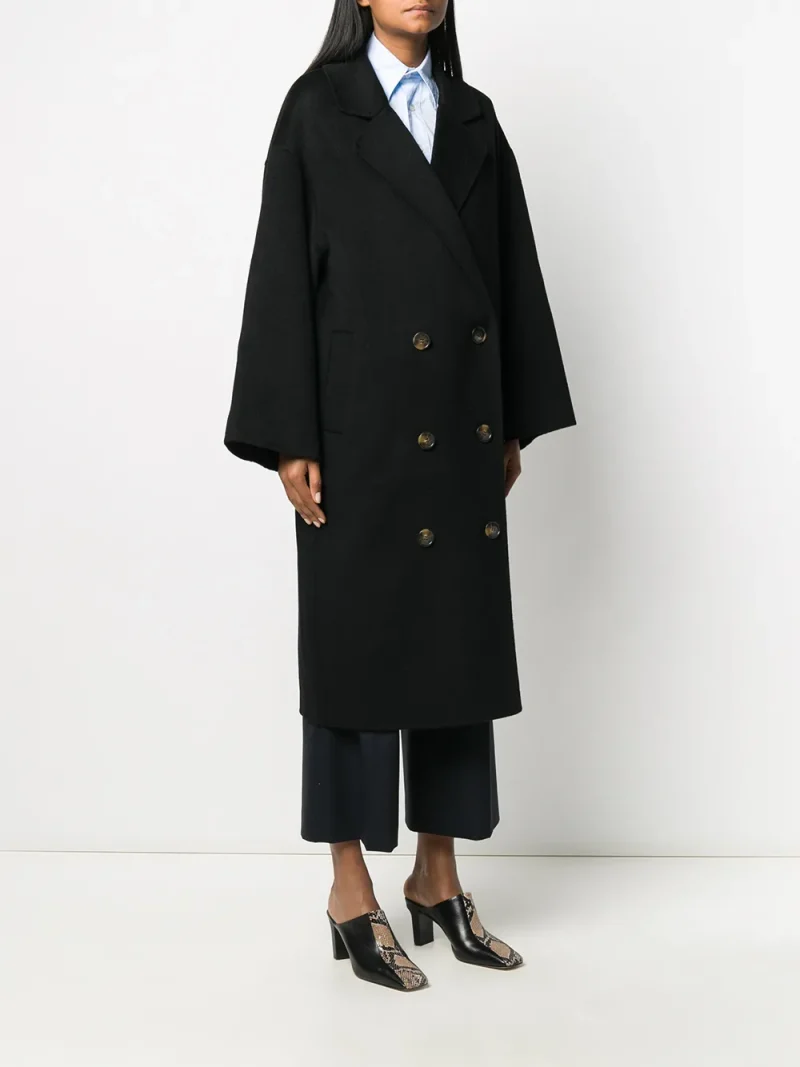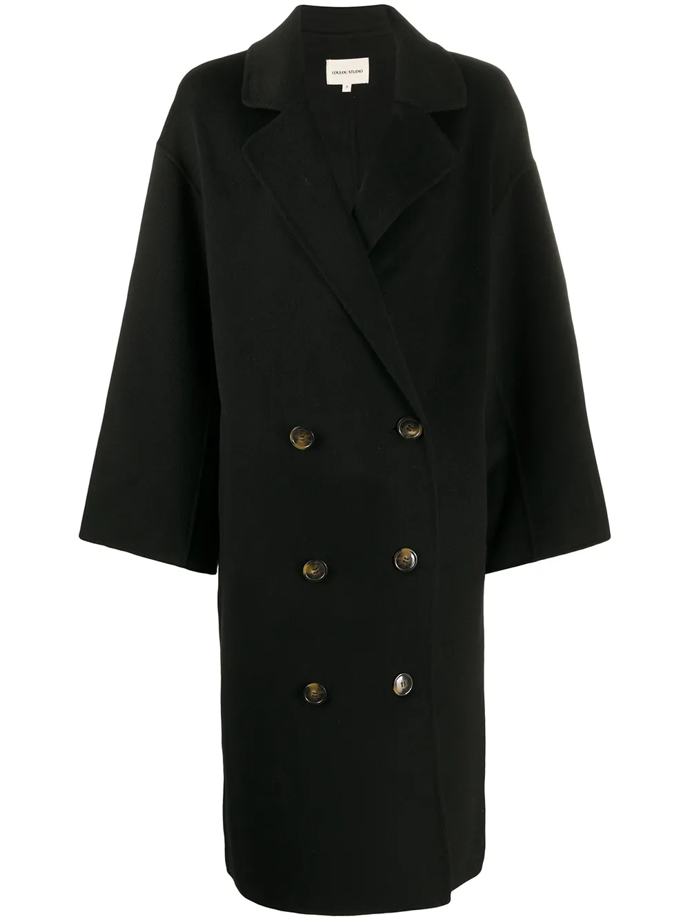 Palton LouLou de Saison Borneo Wool negru, realizat din lana, cu rever crestat, inchidere cu nasturi dubli, umeri cazuti, maneci lungi, croiala ampla, buzunare laterale, slit la spate si tiv drept. Potrivit pentru sezonul toamna/iarna. 90% lana; 10% casmir.