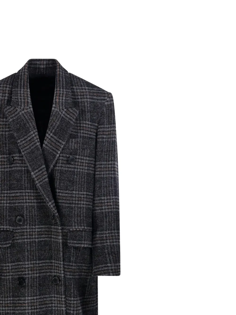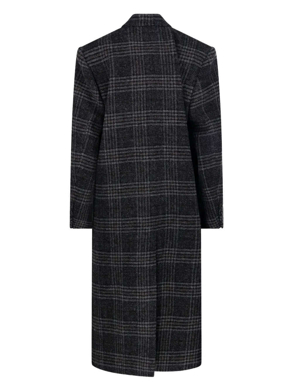 Palton Marant Etoile Lexana Double-Breasted Checked gri, realizat din lana, cu rever crestat, inchidere cu nasturi dubli, maneci lungi, grafica Checked in tesatura, lungie maxi, buzunare laterale cu clapeta si tiv drept. Potrivit pentru sezonul toamna/iarna. 100% lana.