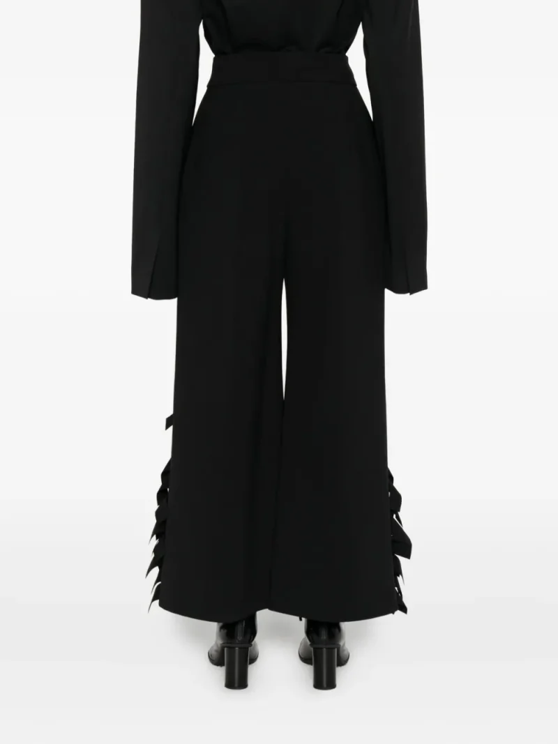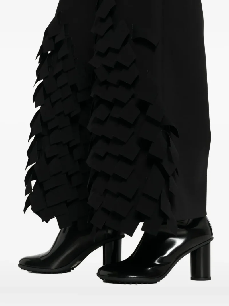 Pantaloni A.W.A.K.E. Mode Rectangle-Detail negru, din poliester, cu inchidere clasica, decorati cu detalii cut-out si tiv evazat. Potrivit pentru sezonul toamna/iarna. 86% poliester; 10% elastan; 4% poliuretan.