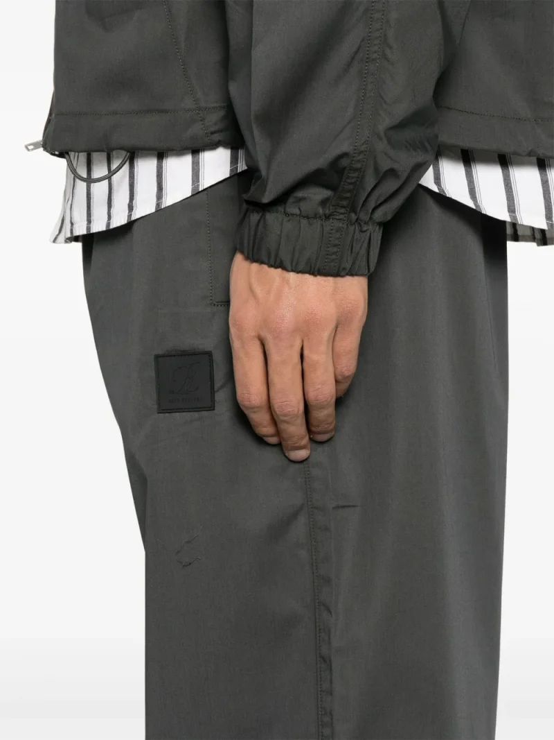 Pantaloni AGOLDE Harrier gri, din bumbac, cu talie elastica, buzunare diagonale cu inchidere fermoar, eticheta Agolde aplicata pe lateral si tiv cu inchidere snur. Potriviti pentru sezonul primavara/vara. 100% bumbac. Cand cumparati acest articol unisex, retineti ca este clasificat in marimea standard pentru barbati.