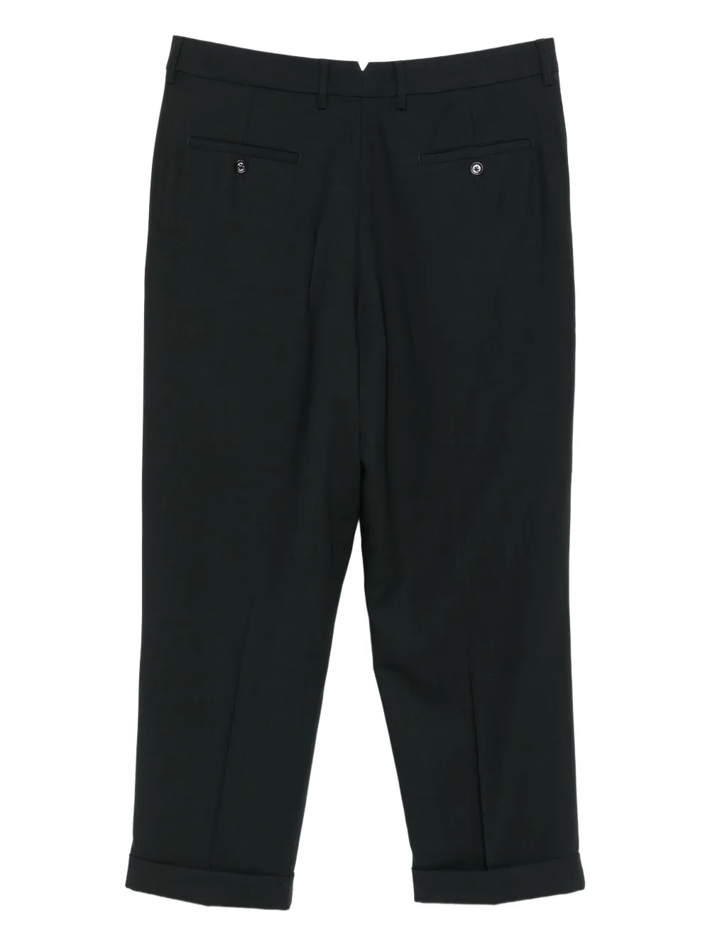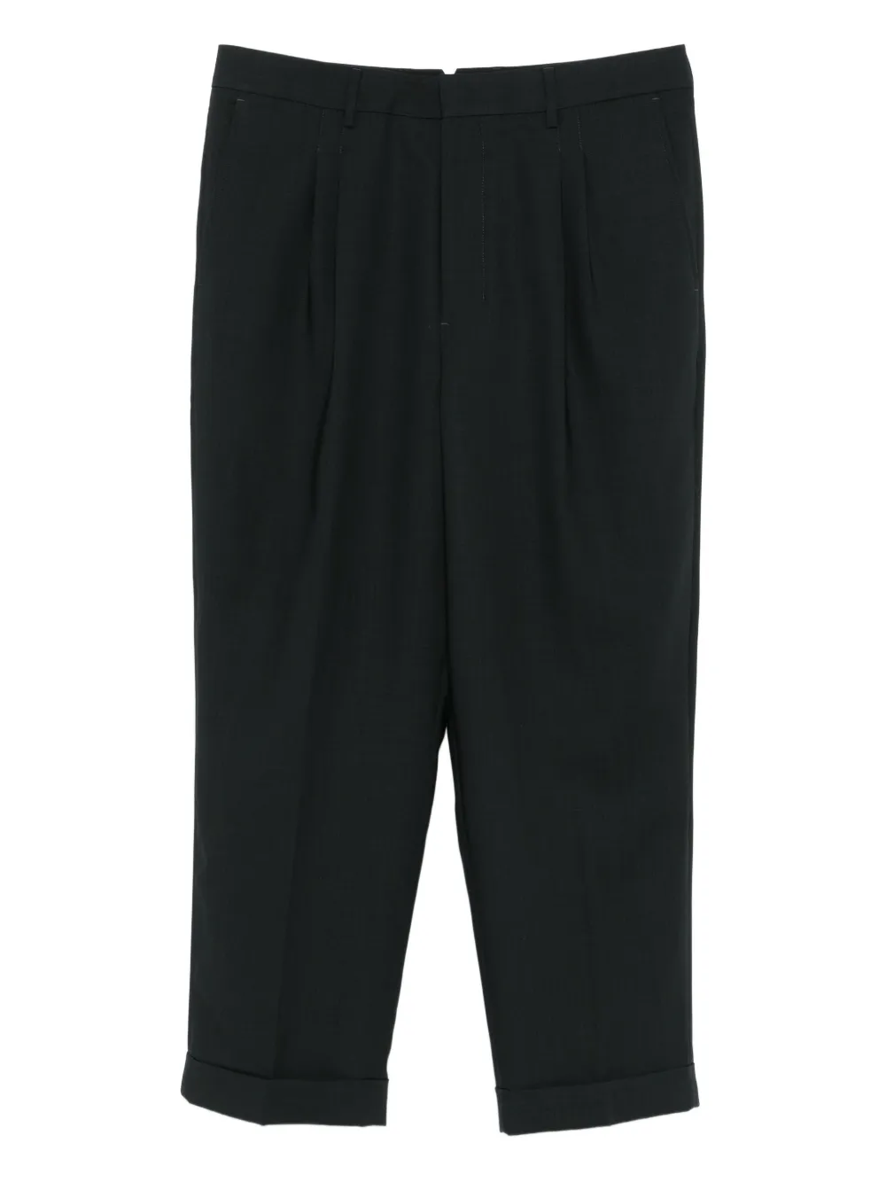 Pantaloni Ami Paris AMI Pleated Cropped negru, croiala din lana, cu inchidere clasica, buzunare laterale, buzunare tip welt la spate, pliuri decorative si tiv drept Potriviti pentru sezonul toamna/iarna. 100% lana.