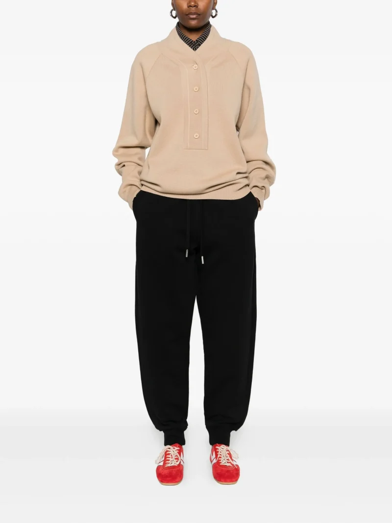 Pantaloni AMI Paris negru, din bumbac, cu talie elastica cu snur si tiv elastic. Potriviti pentru sezonul toamna/iarna. 100% bumbac