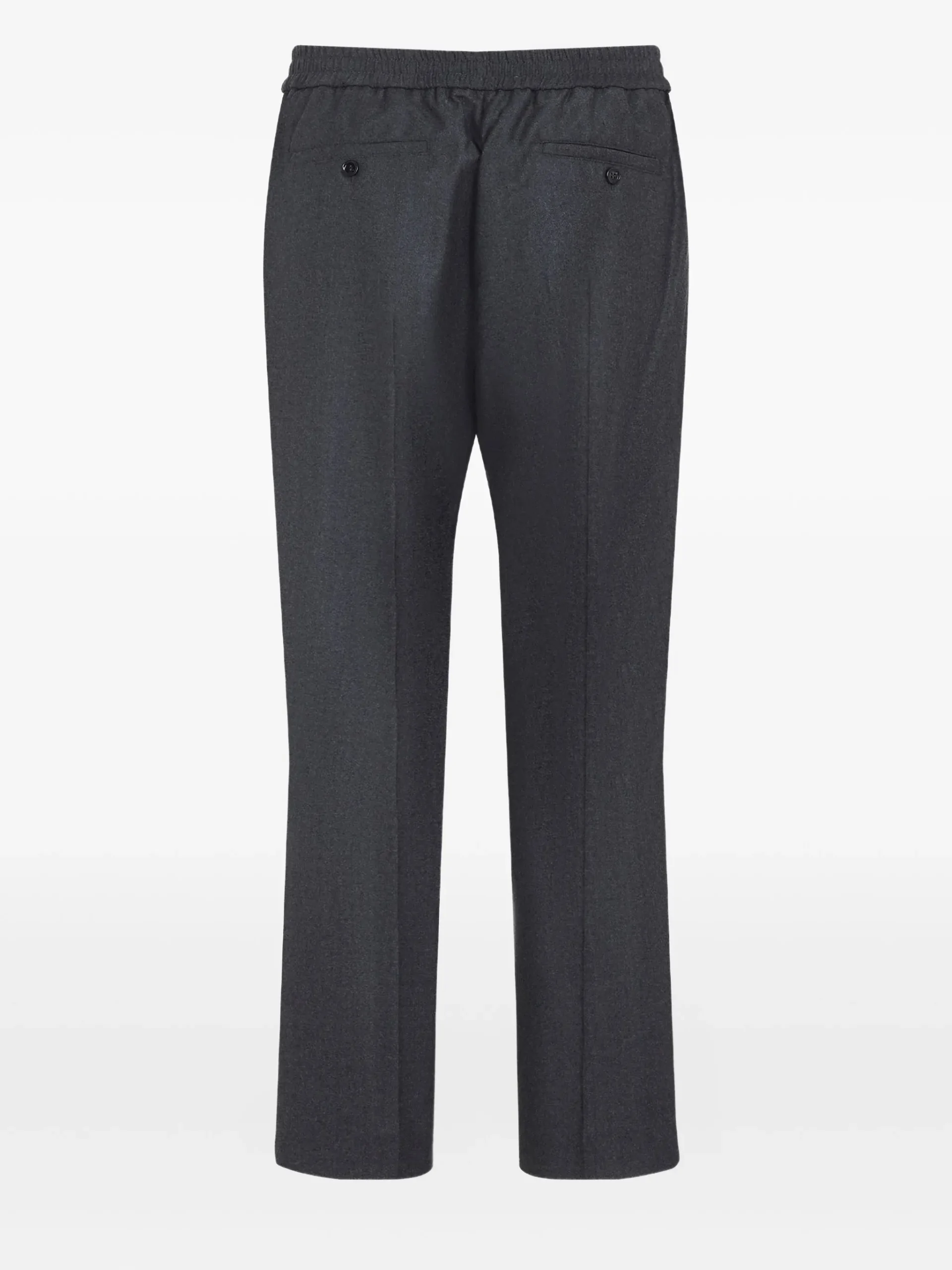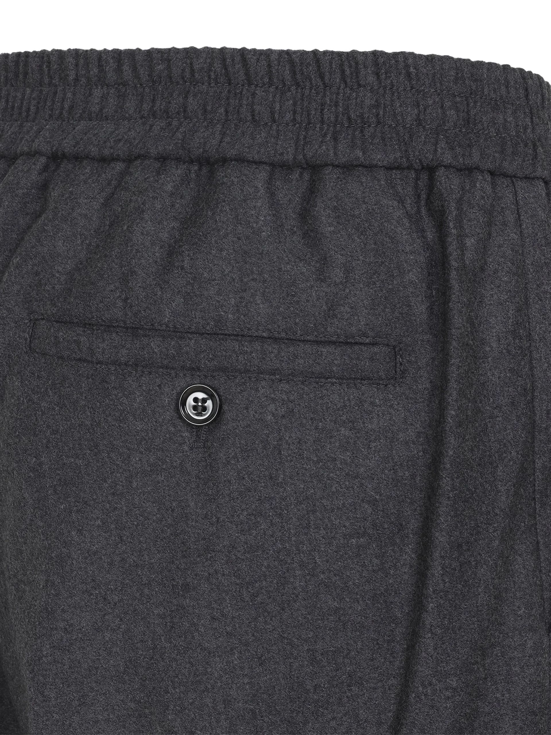 Pantaloni Ami Paris gri, din lana, cu talie elastica, inchidere cu nasturi, buzunare tip welt si croiala dreapta. Potriviti pentru sezonul toamna/iarna. 100% lana