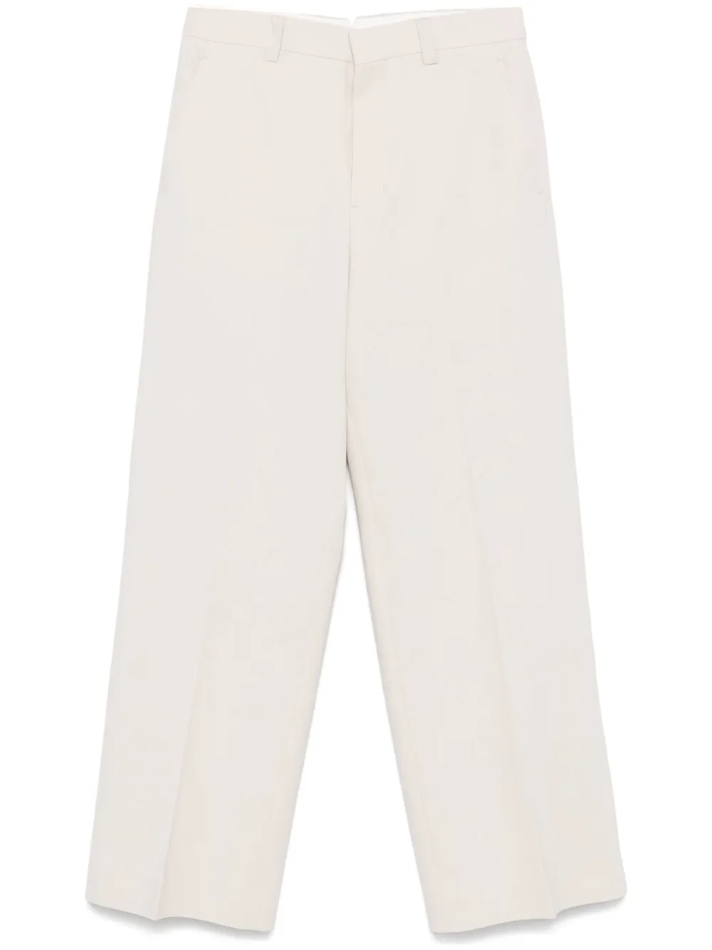 Pantaloni AMI Paris Tailored gri , buzunare laterale, buzunare la spate, inchidere cu fermoar si tiv drept. 100% bumbac. Potriviti pentru sezonul primavara/vara.