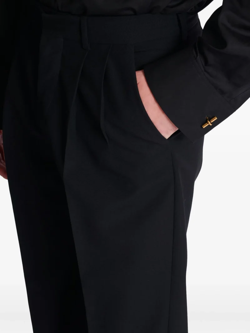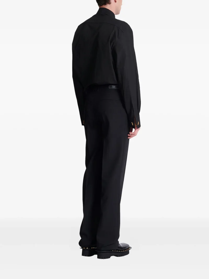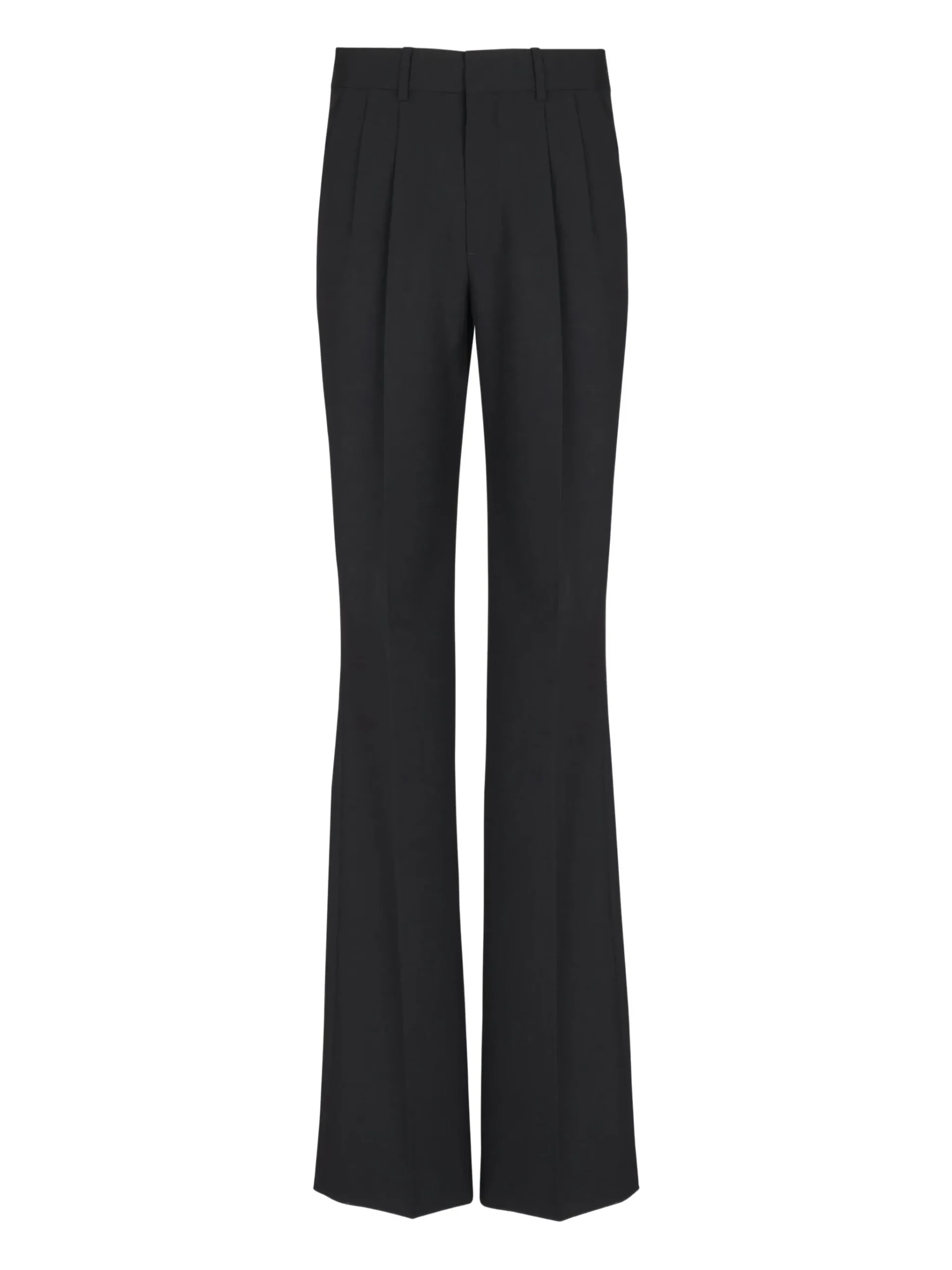 Pantaloni Balmain flared-leg wool negri, din lana, cu gaici pentru curea, pliuri frontale, buzunar tip welt la spate si croi drept cu usor evazat.100% lana