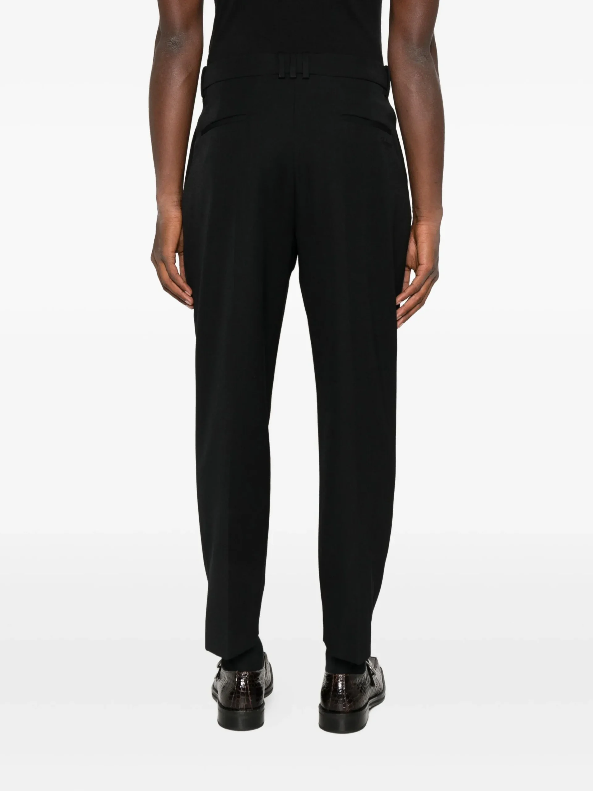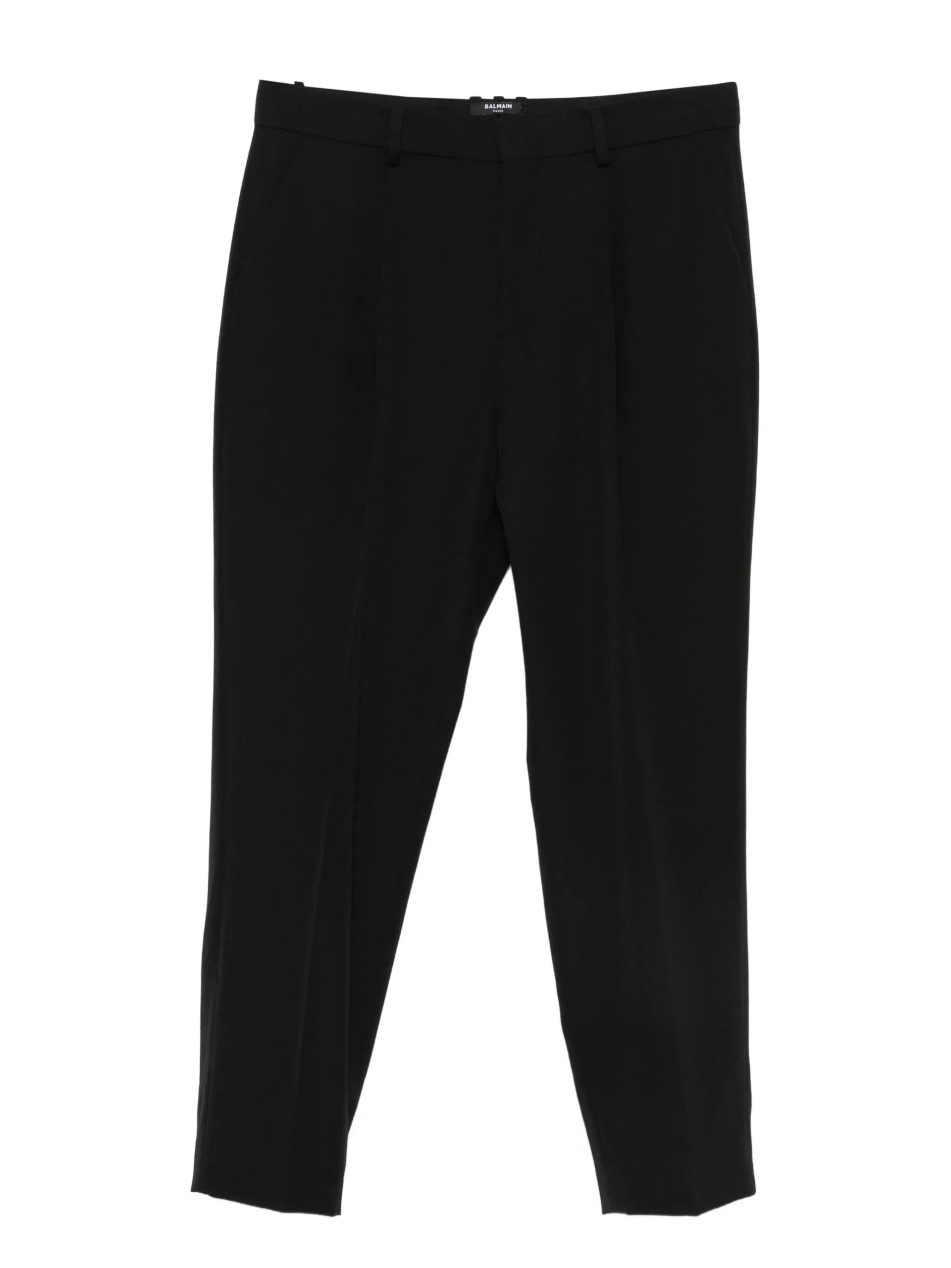 Pantaloni Balmain Pleated negru, cu pliu frontal, buzunare laterale ascunse in cusatura, buzunare welt la spate si inchidere frontala ascunsa.100% lana