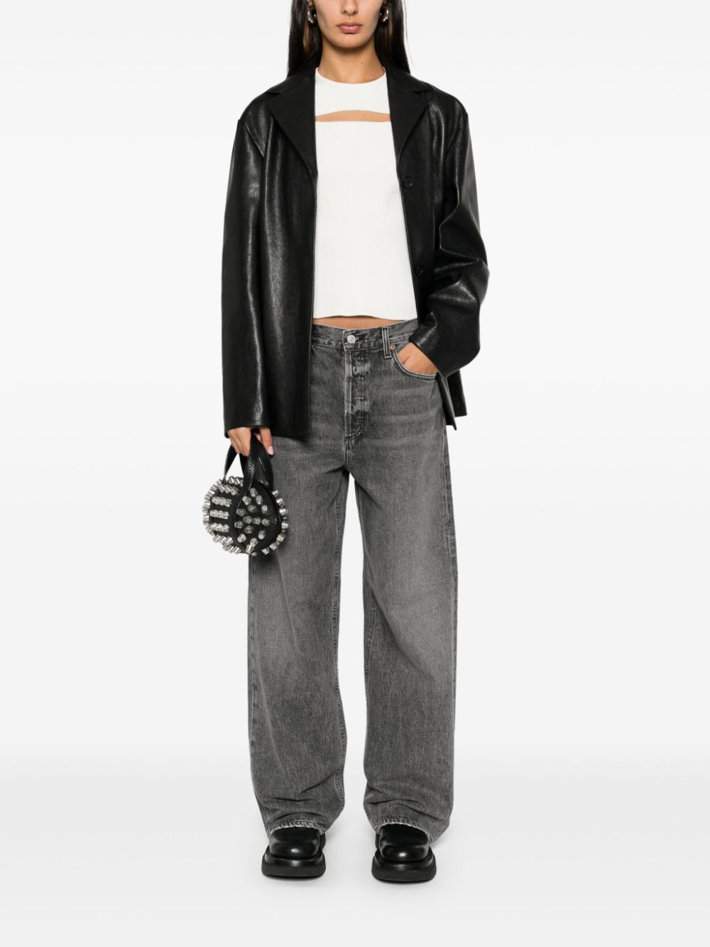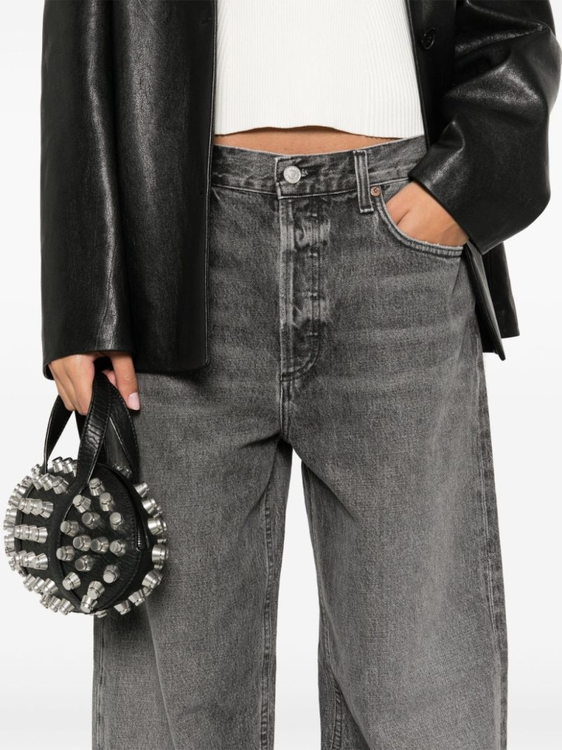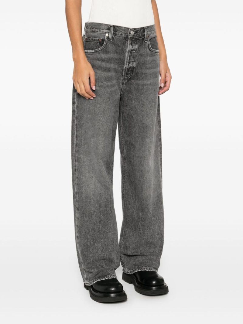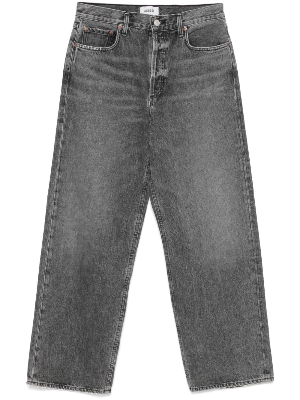 Pantaloni denim AGOLDE Low-Rise gri, wide-leg, din bumbac regenerativ, cu talie joasa, inchidere cu nasture si fermoar, model „5-pockets, aspect prespalat si tiv drept. Potriviti pentru sezonul primavara/vara. 100% bumbac regenerativ.