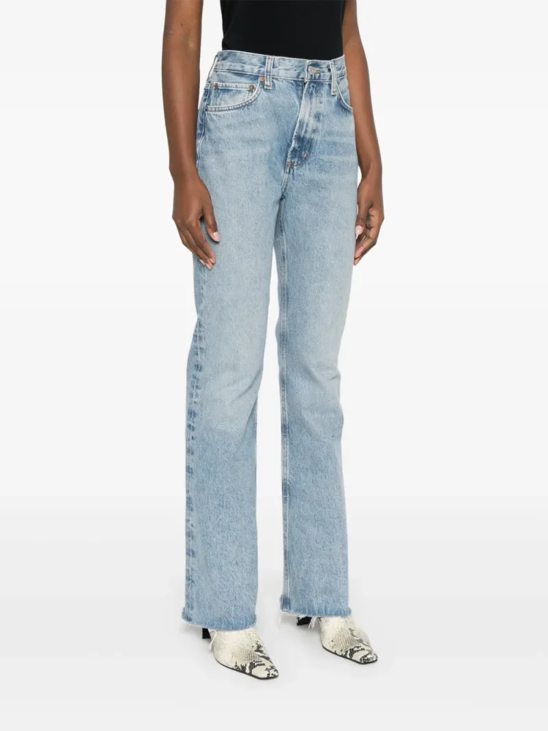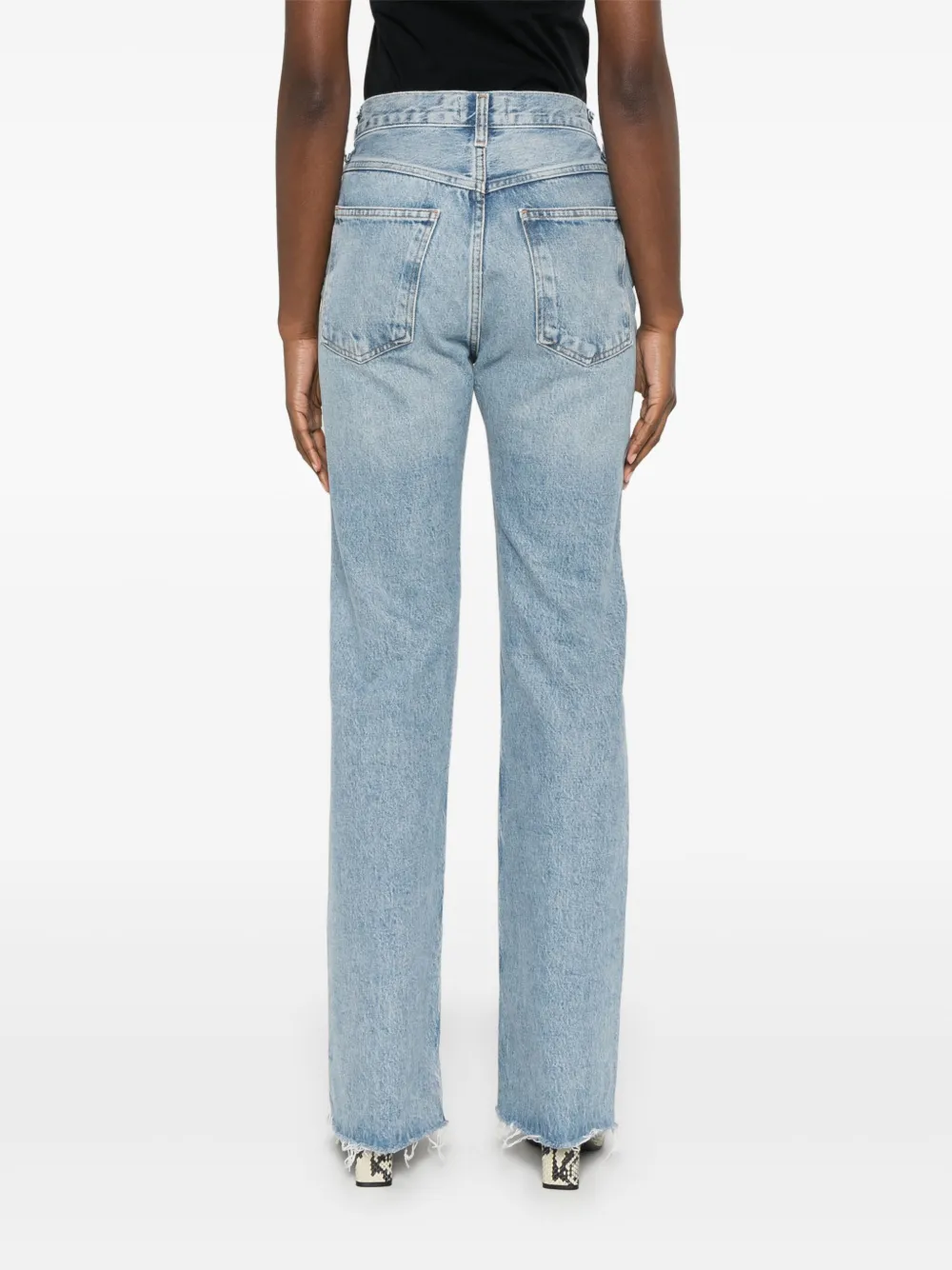 Pantaloni denim AGOLDE V-Waist Albastru, din bumbac denim cu inchidere nasture si fermoar, model „5-pockets”, eticheta logo pe interior si tiv cu aspect uzat. Potriviti pentru sezonul primavara/vara. 100% bumbac denim.