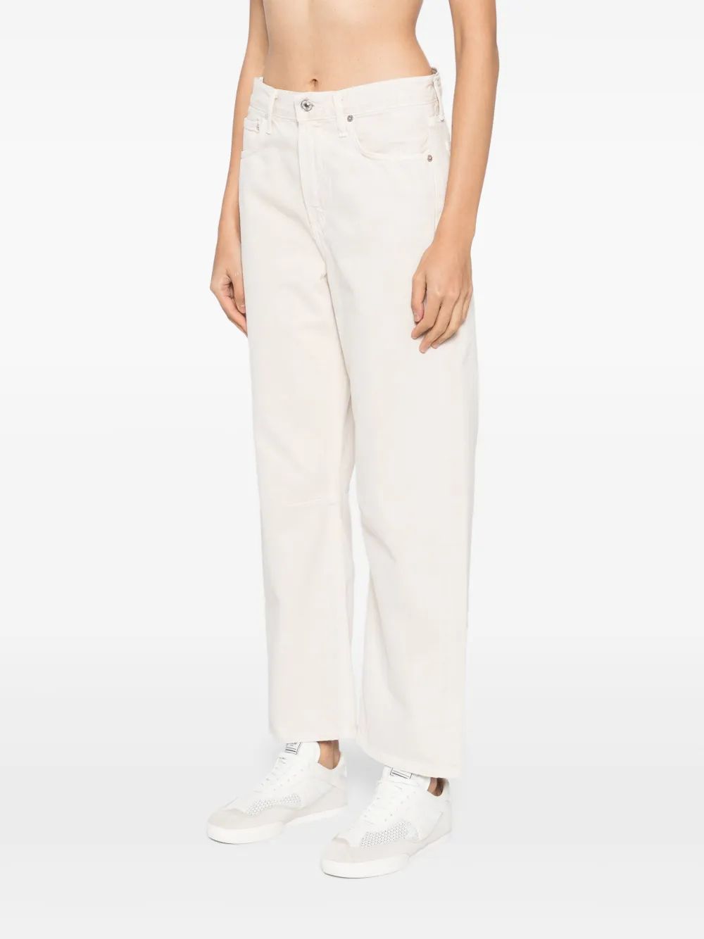 Pantaloni denim Citizens of Humanity Miro bej, din bumbac denim, cu inchidere nasture si fermoar, model „5-pockets, eticheta cu logo la spate si lungime medie cu tiv drept. Potriviti pentru sezonul toamna/iarna. 100% bumbac.