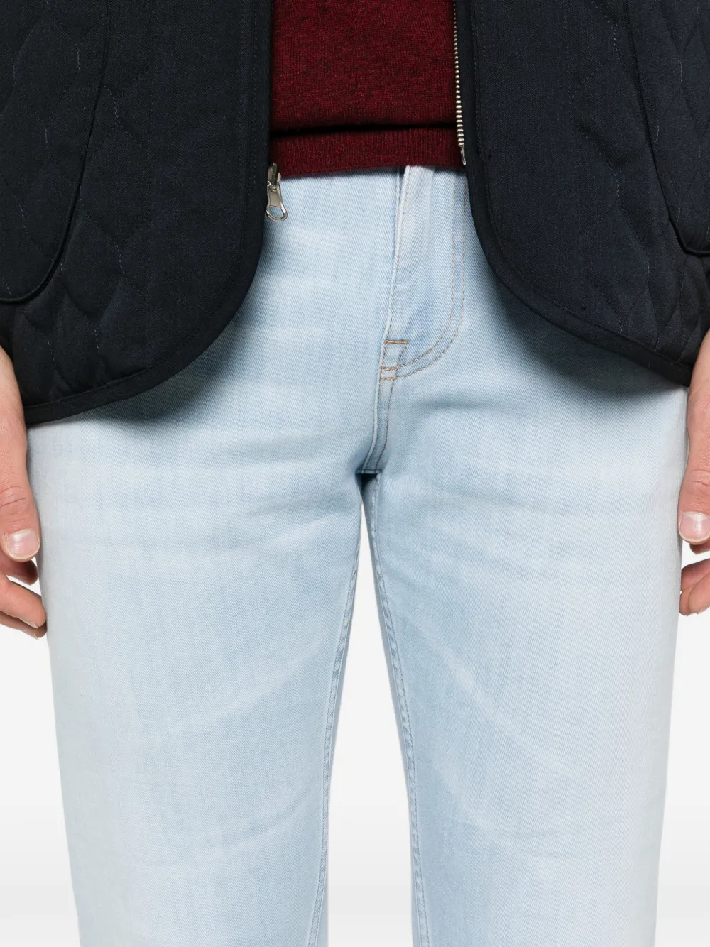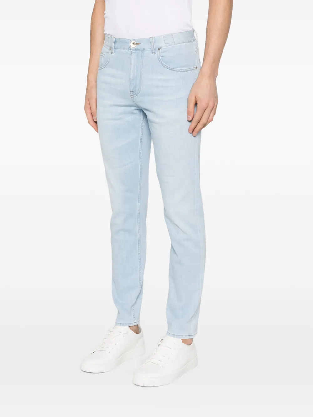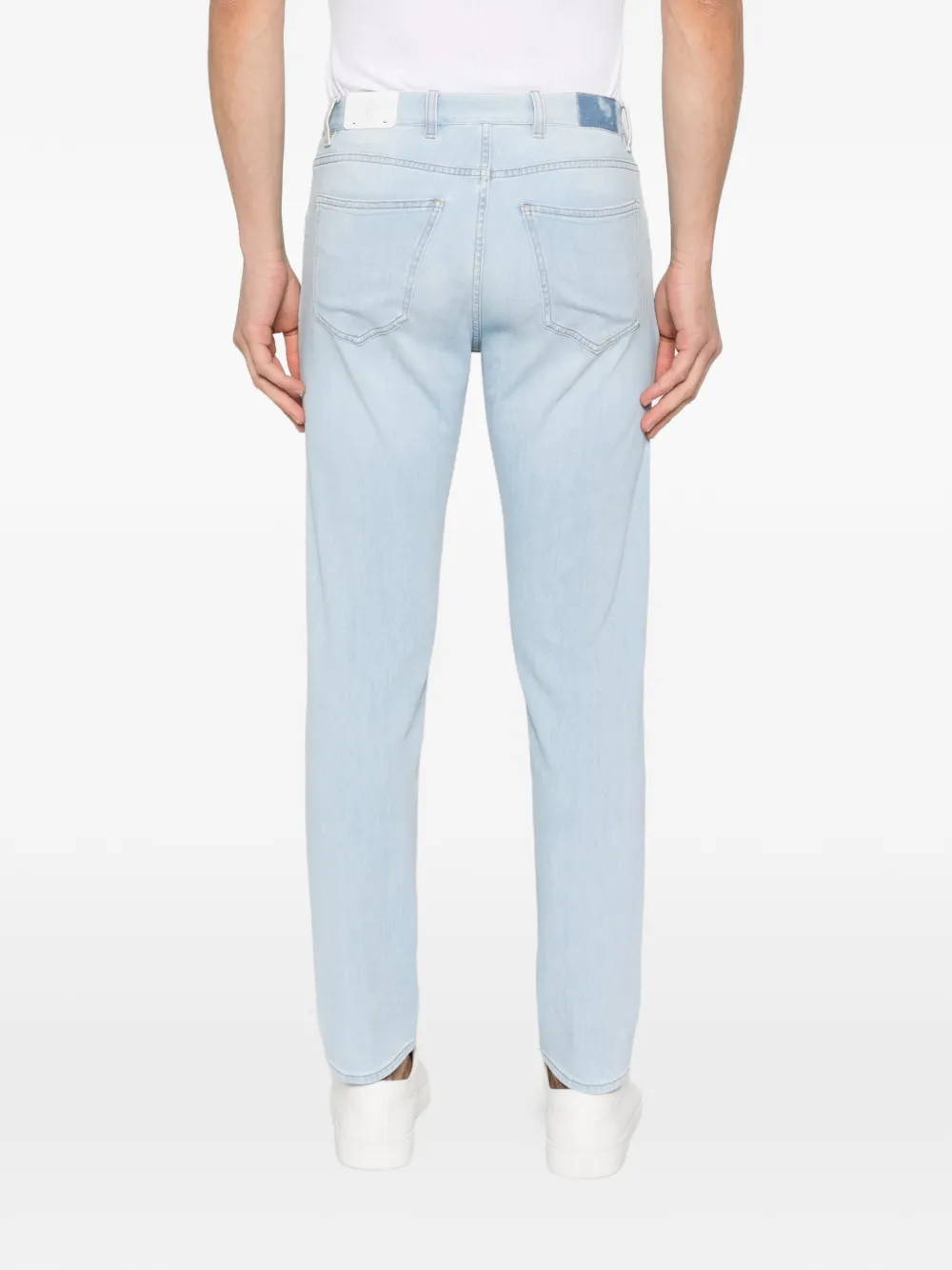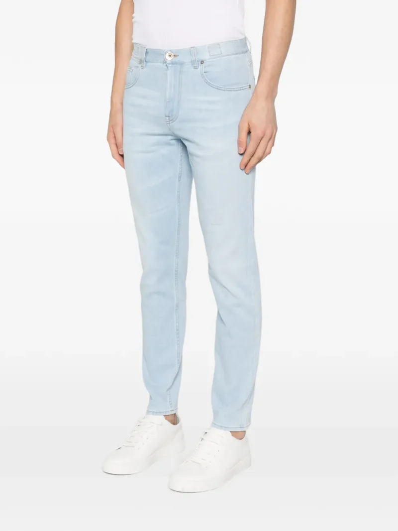 Pantaloni denim Eleventy Five-Pocket albastru, realizati din bumbac denim premium, model „5-pockets” finisat impecabil, eticheta cu logo la spate, aspect uzat si tiv drept. Potriviti pentru sezonul primavara/vara. 92% bumbac; 8% elastan.