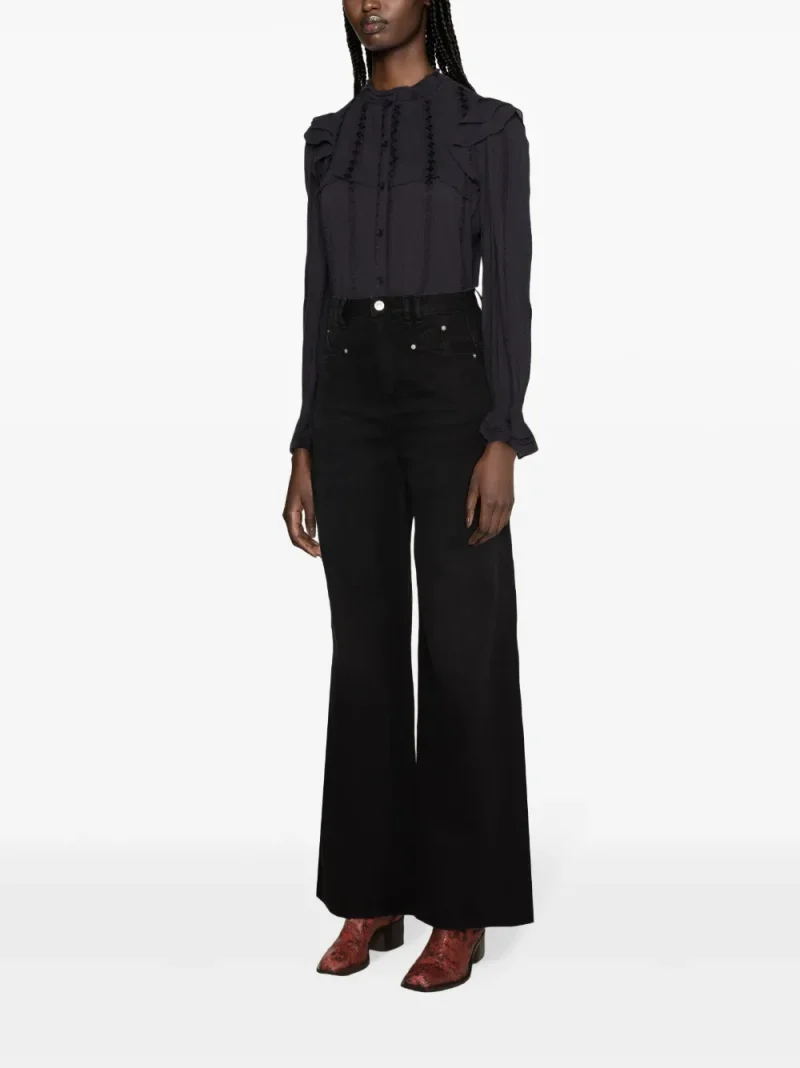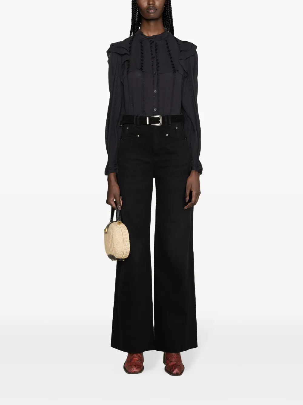 Pantaloni denim Isabel Marant Lemony Wide-Leg negru