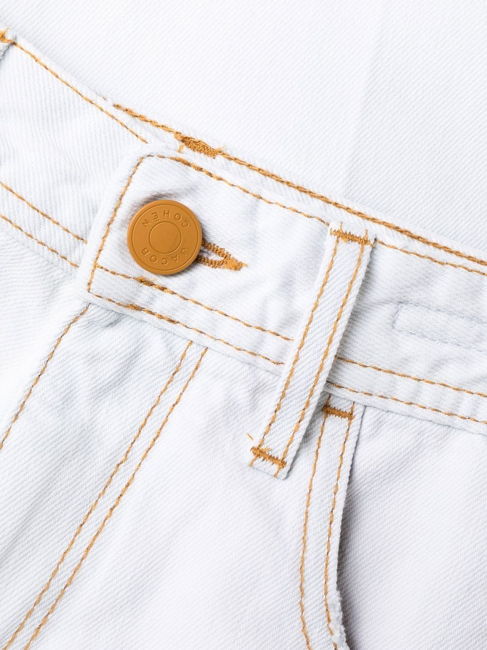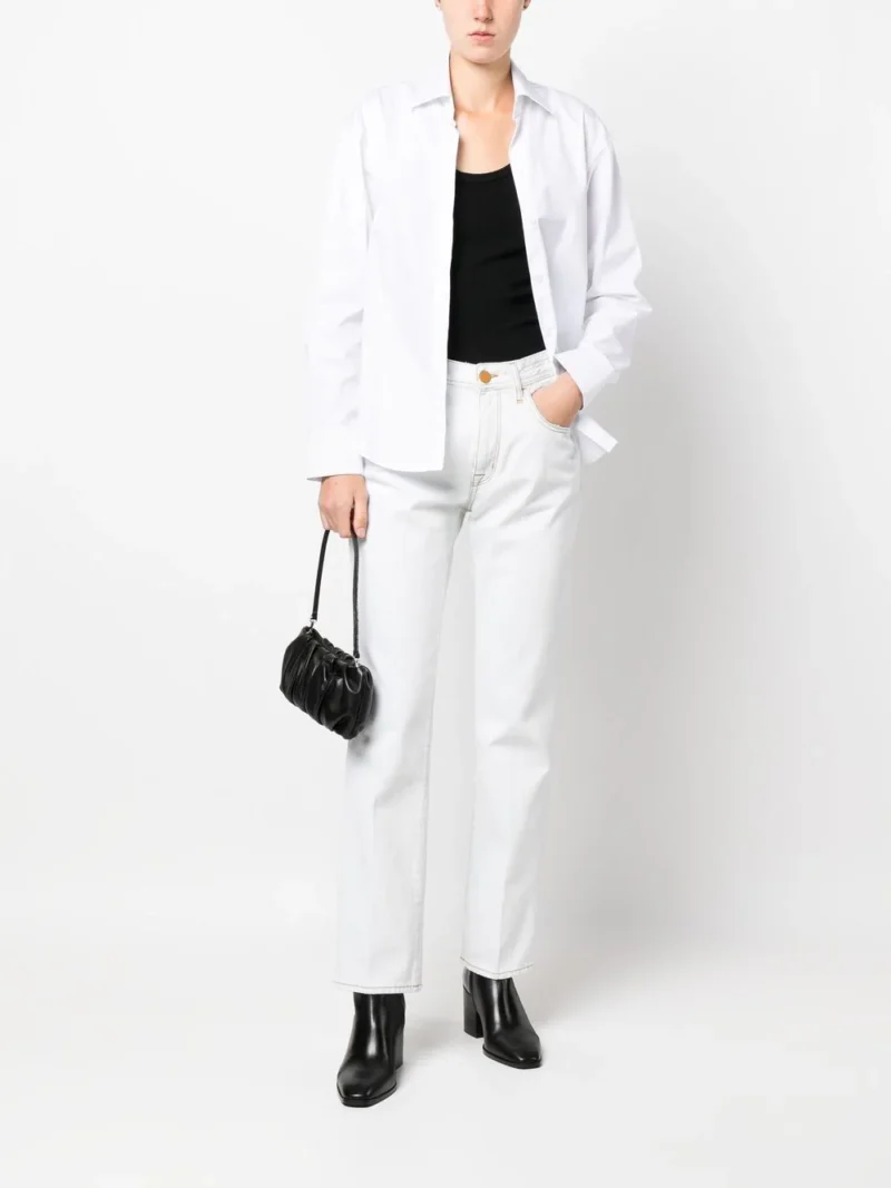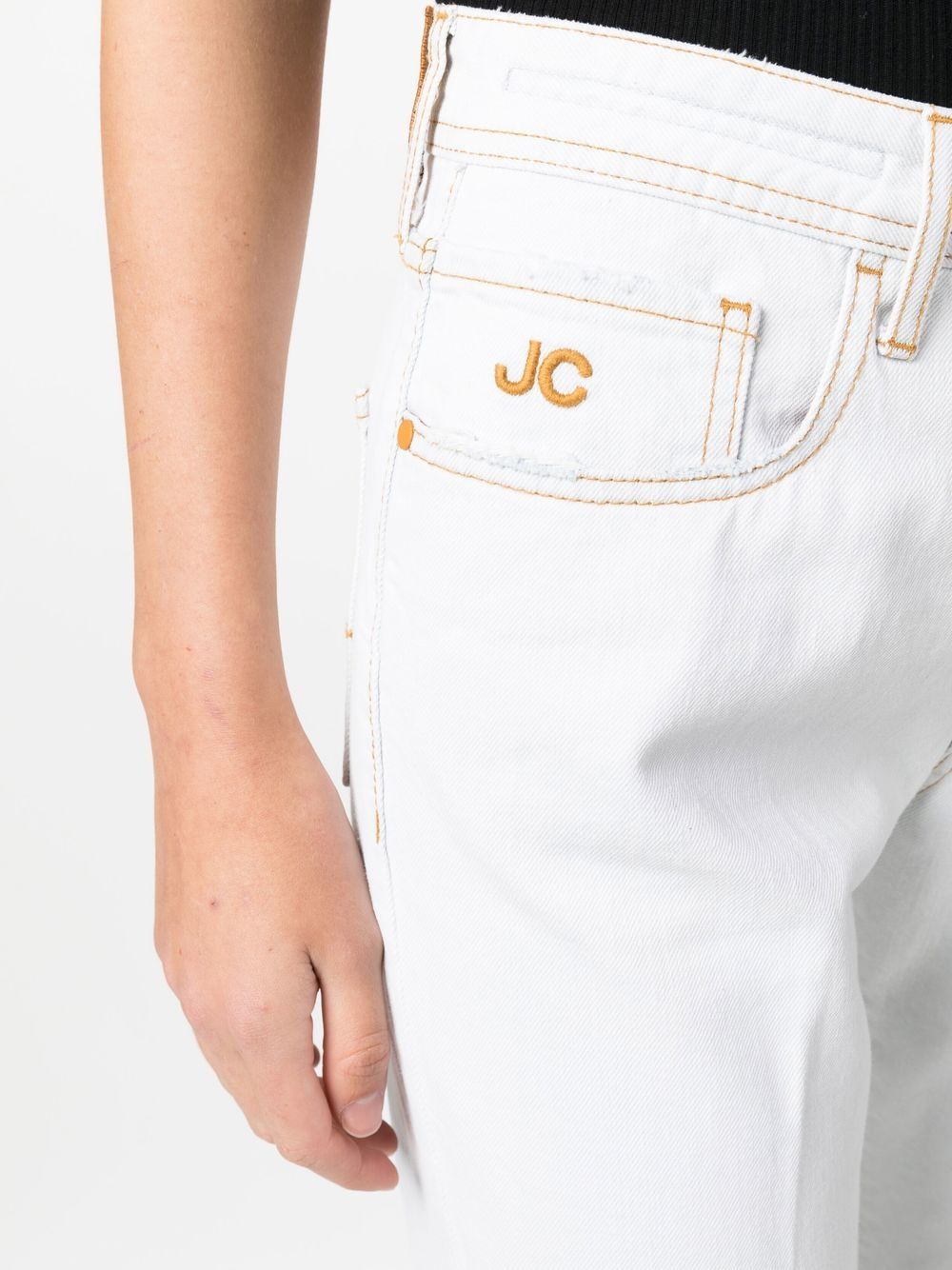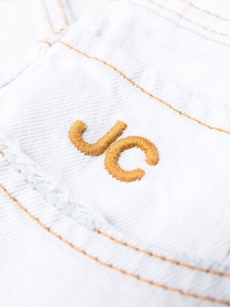 Pantaloni albi din bumbac denim, straight fit, cu talie inalta, inchidere cu nasture si fermoar, croaia „5-pockets”, eticheta logo Jacob Cohen cusuta la spate, aspect usor uzat si tiv drept. Potriviti pentru sezonul toamna/iarna. Detalii: Model- Kate; Straight fit; Talie inalta; Interior- 78 cm; tiv- 21 cm. 100% bumbac denim.