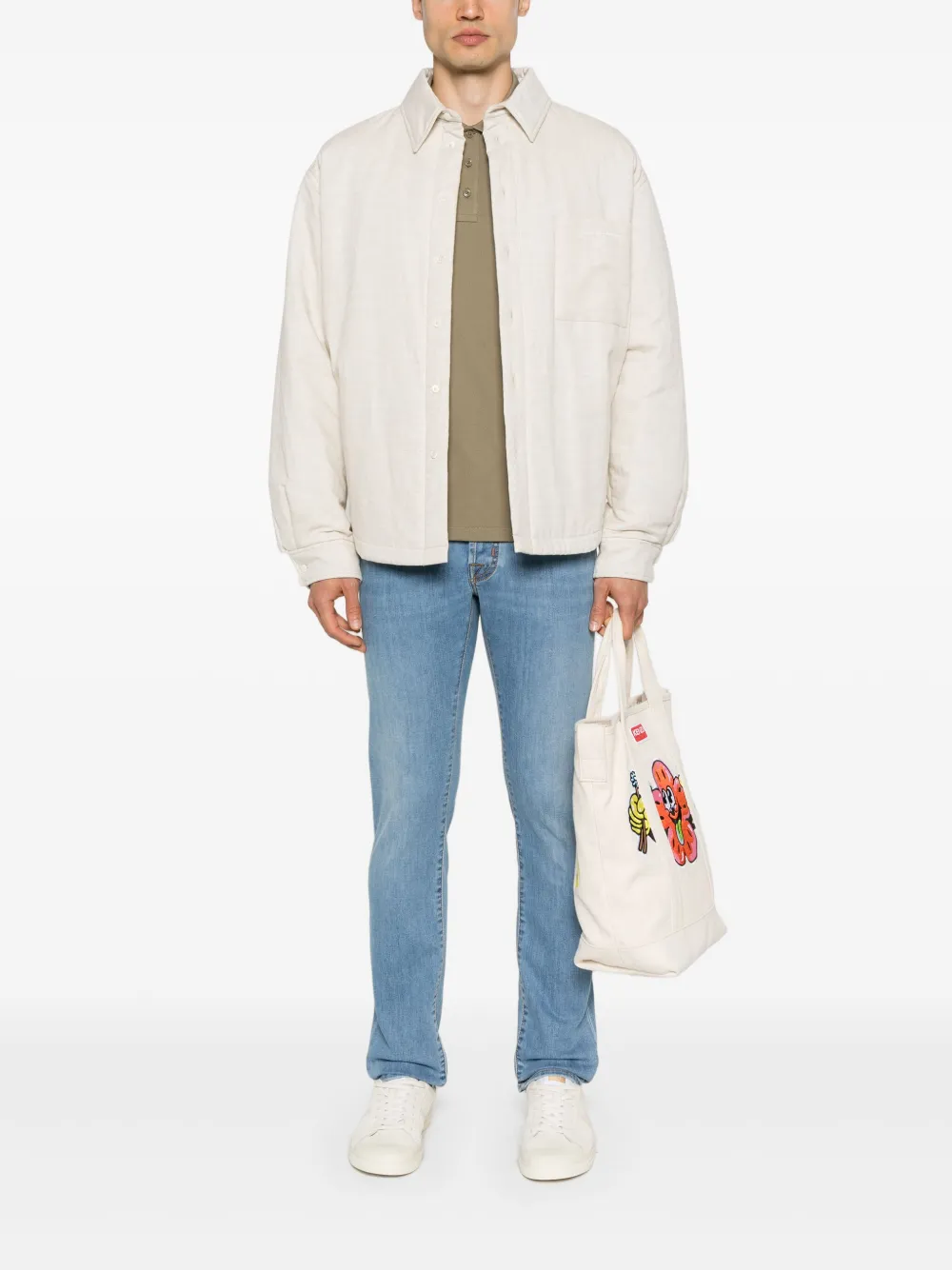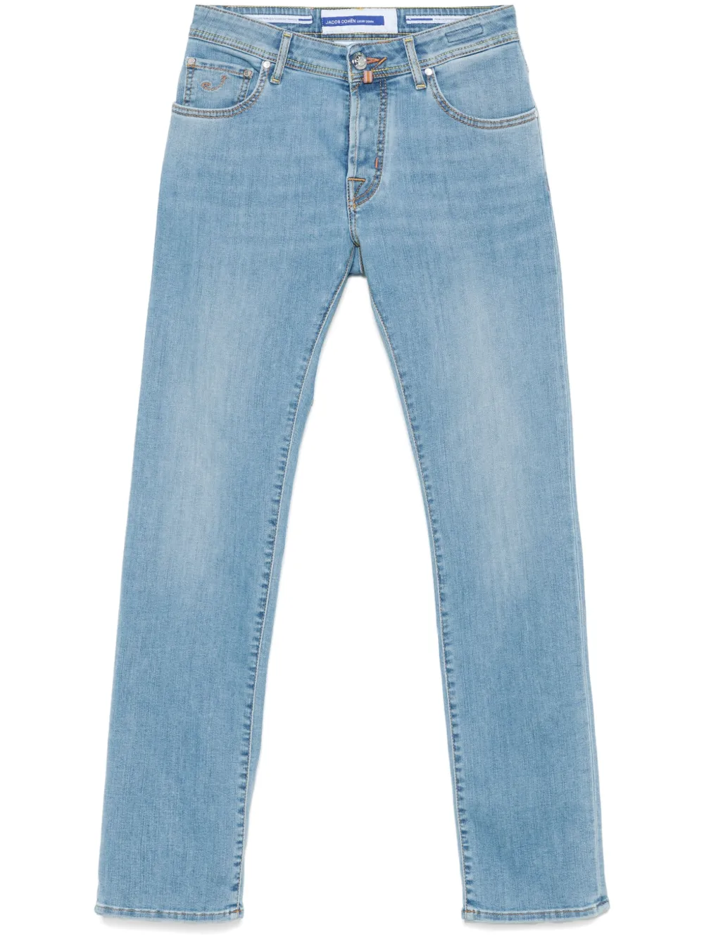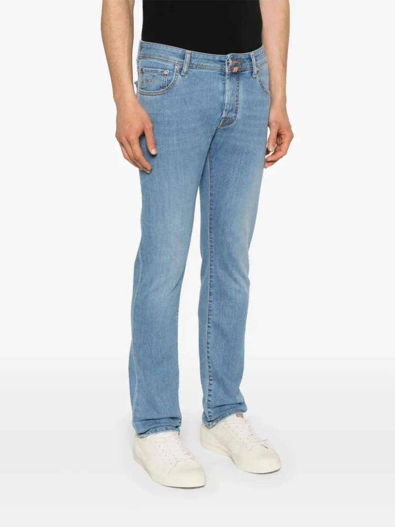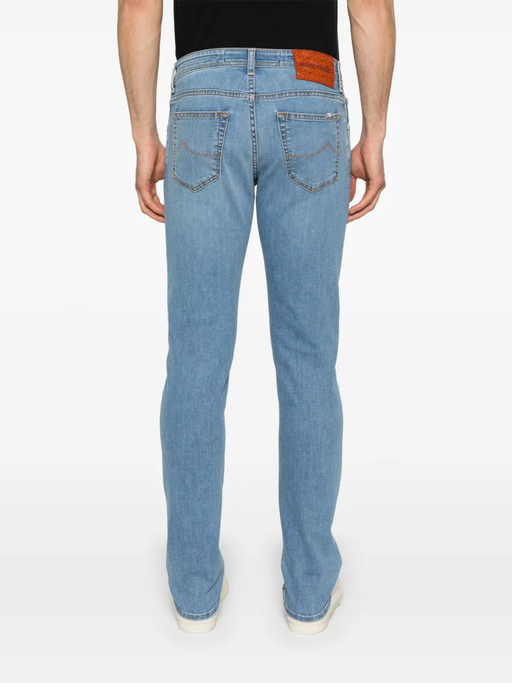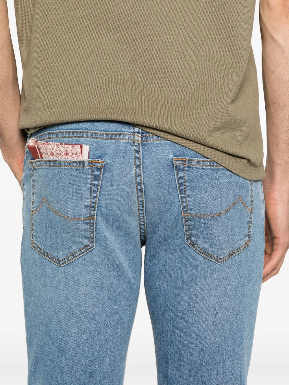 Pantaloni denim Jacob Cohen Nick albastru, din bumbac denim, cu inchidere nasture si fermoar, model „5-pockets”, eticheta cu logo aplicata la spate si tiv drept. Potriviti pentru sezonul primavara/vara. 73% bumbac; 20% poliester; 5% elastomuliester; 2% elastan; 65% poliester; 35% bumbac.