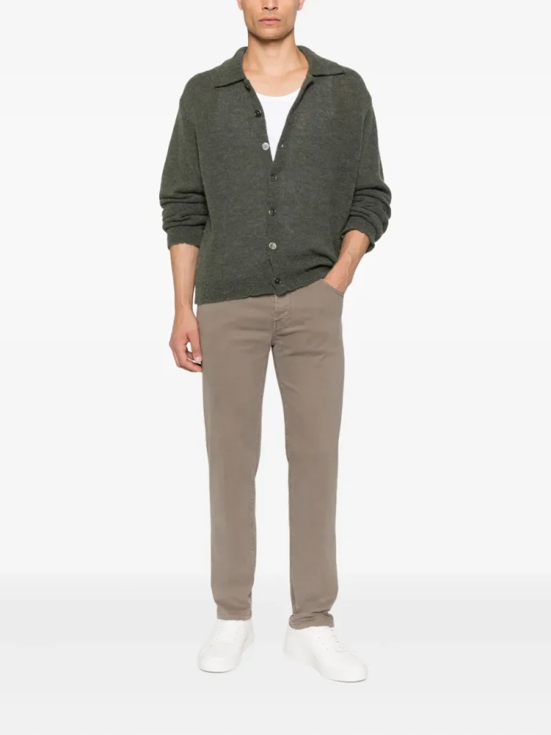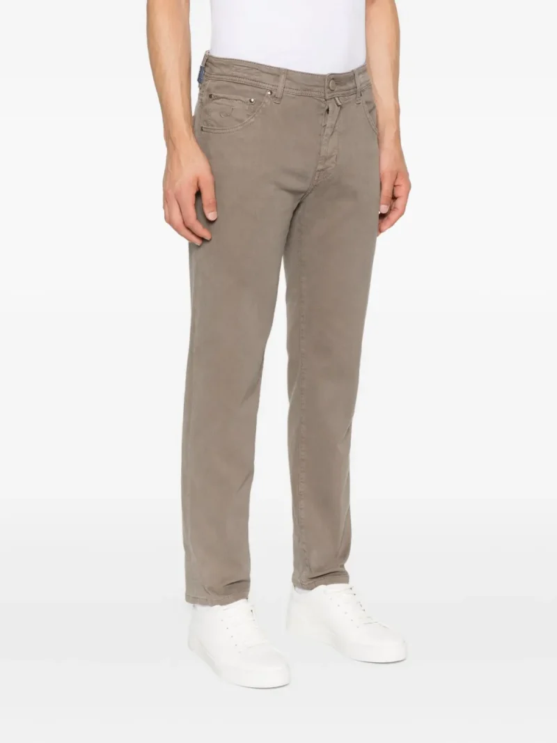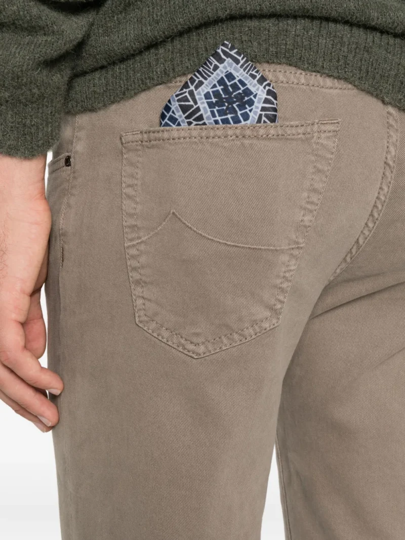 Pantaloni denim Jacob Cohen Scoot Embellished-Pocket maro, cu inchidere nasture si fermoar, croiala conica, model „5-pockets”, esarfa decorativa si tiv drept. Potriviti pentru sezonul toamna/iarna. 49% lyocell; 49% bumbac; 2% elstan.