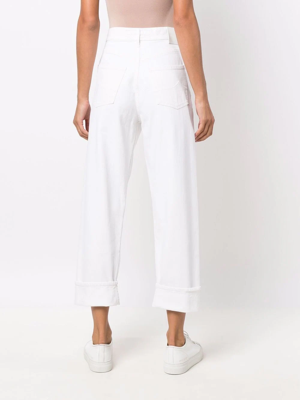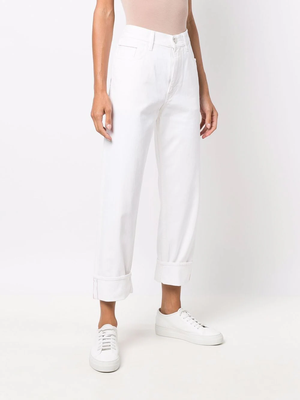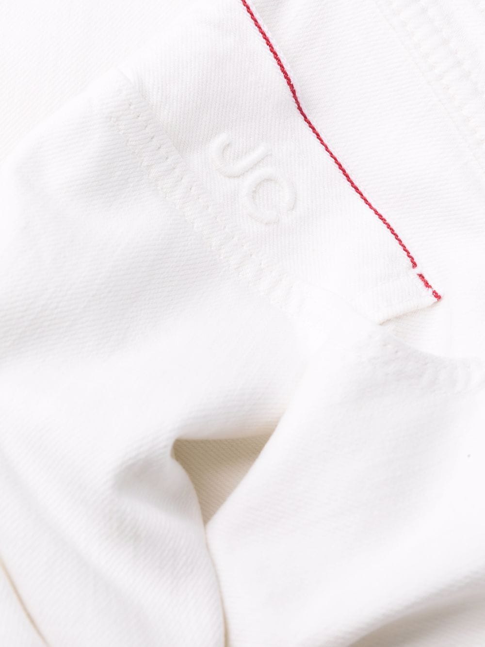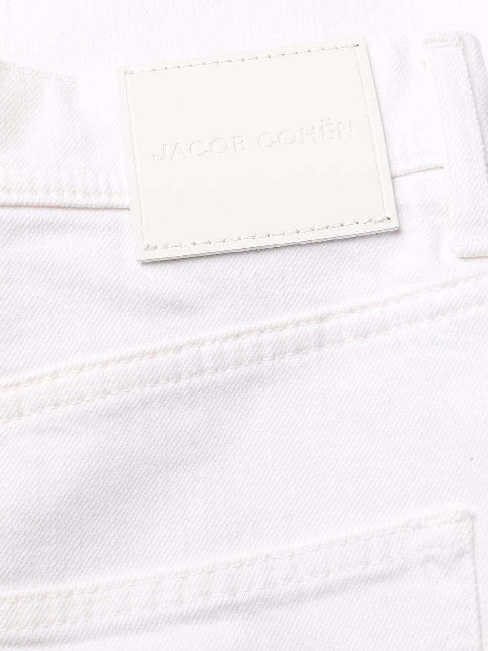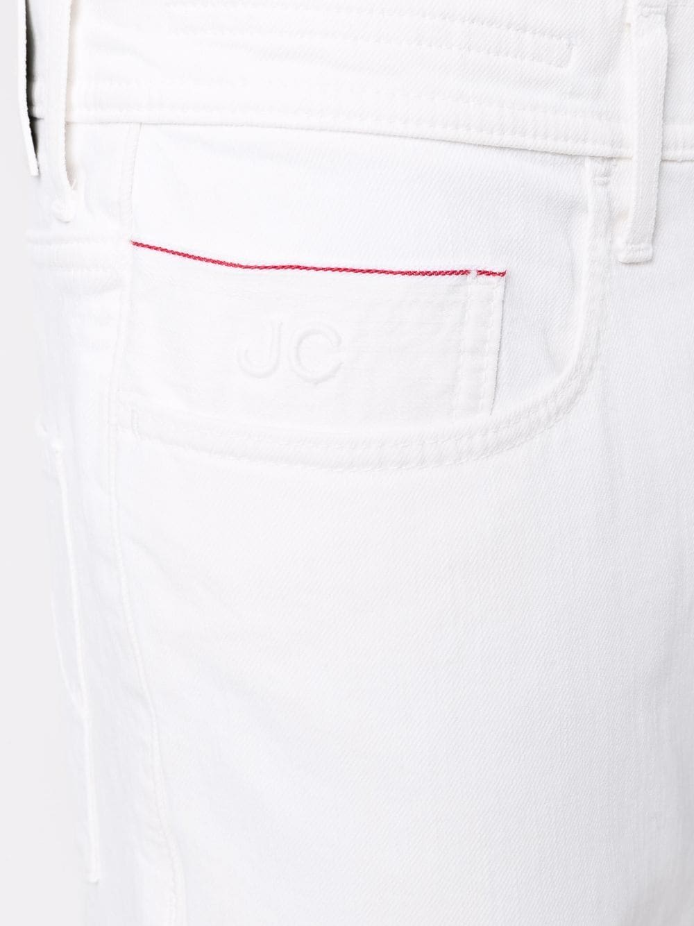 Pantaloni albi din bumbac denim, straight fit, cu talie inalta, inchidere cu nasture si fermoar, croiala „5-pockets”, eticheta logo Jacob Cohen cusuta la spate si tiv drept. Potriviti pentru sezonul toamna/iarna. 98% bumbac denim; 2% elastan.