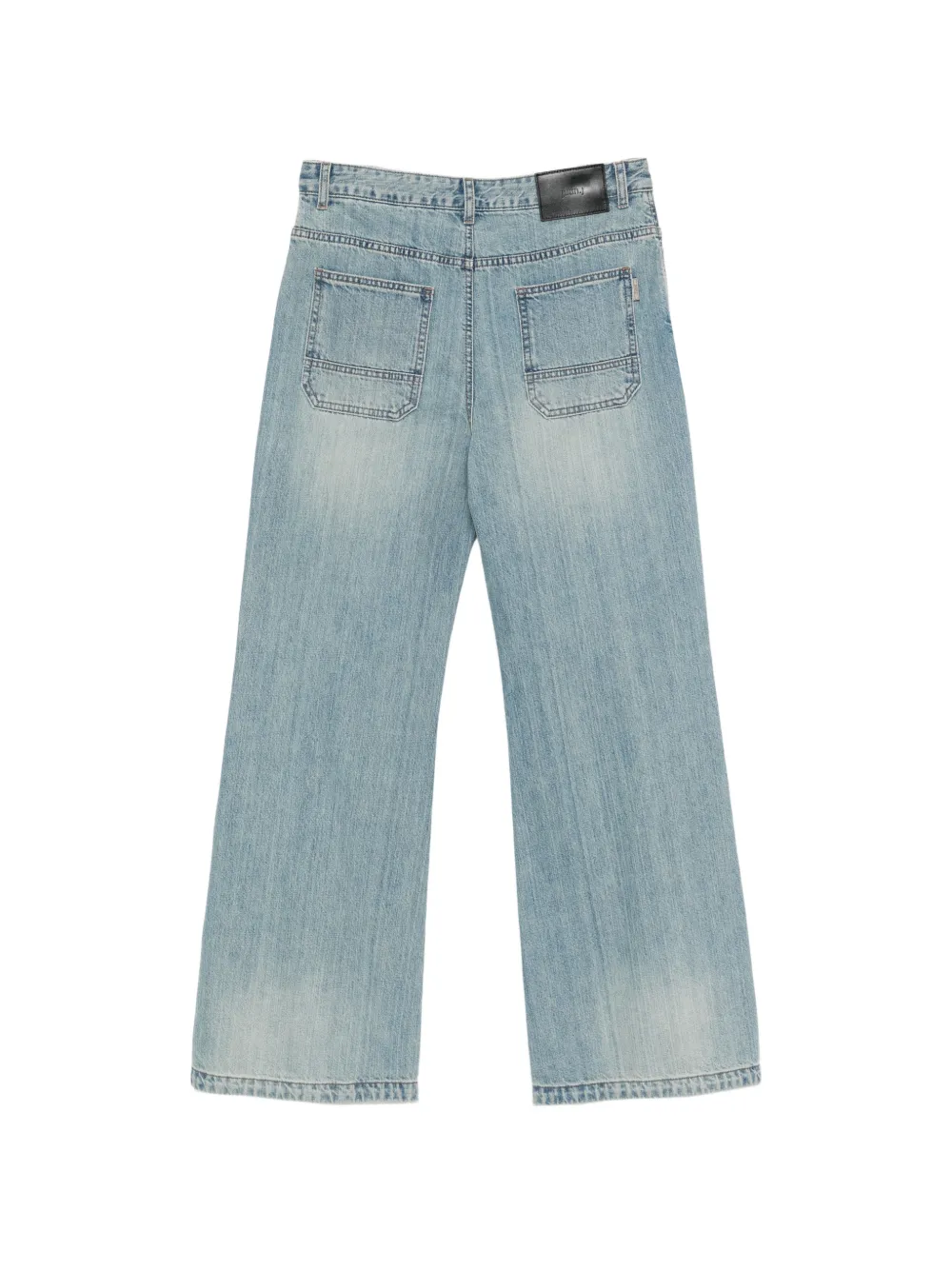 Pantaloni denim JUUN.J flared albastru, realizati din bumbac, cu inchidere nasture si fermoar, model „5-pockets”, constructie din panouri si tiv evaza. Potriviti pentru sezonul primavara/vara. 100% bumbac.