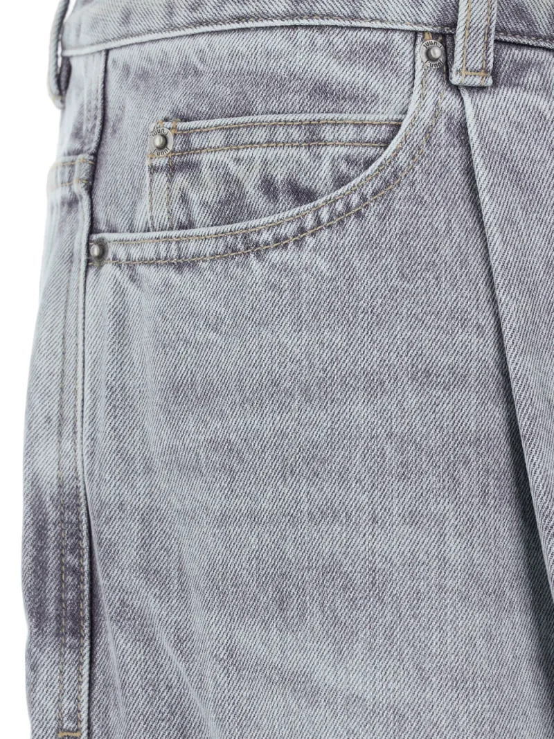 Pantaloni denim JUUN.J Pleated Five-Pocket gri, super wide-fit, realizati din denim, cu talie inalta, model „5-pockets”, detalii plisate si tiv drept. Potriviti pentru sezonul toamna/iarna. 100% bumbac.