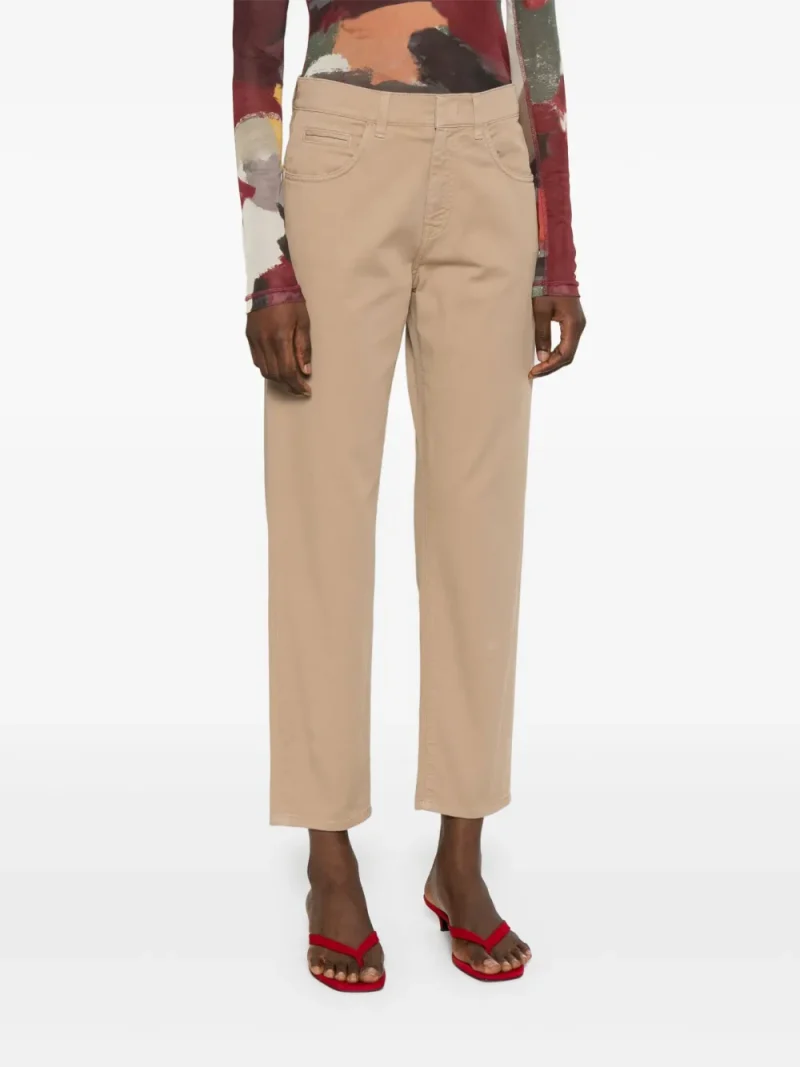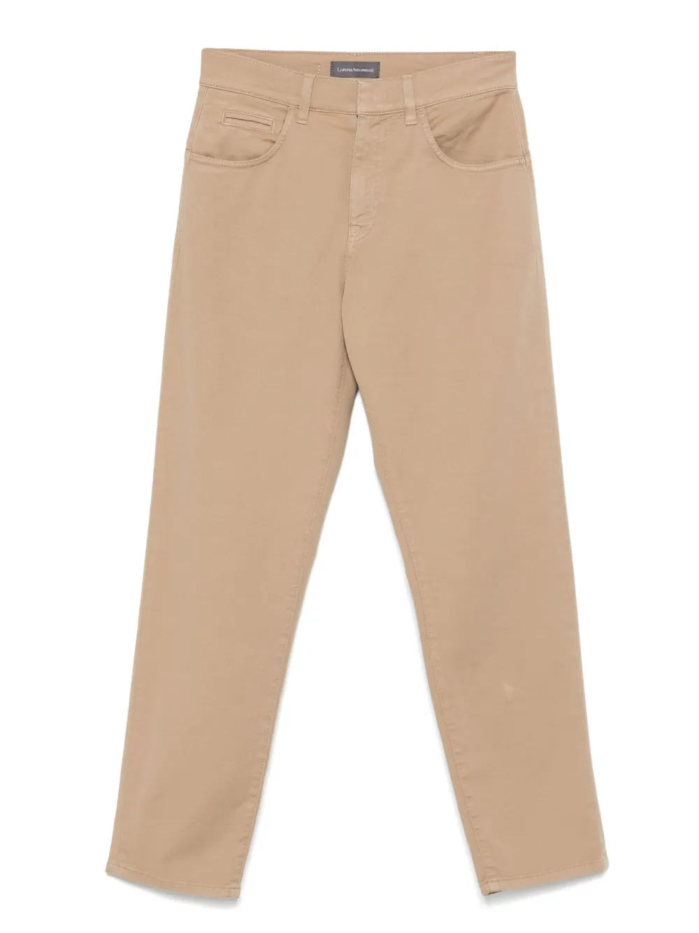 Pantaloni denim Lorena Antoniazzi Tapered bej, dim bumbac denim, cu inchidere nasture si fermoar, model „5-pockets”, eticheta din piele cu logo gravat la spate si tiv drept. Potriviti pentru sezonul primavara/vara. 2% elastam; 98% bumbac; 100% bumbac.