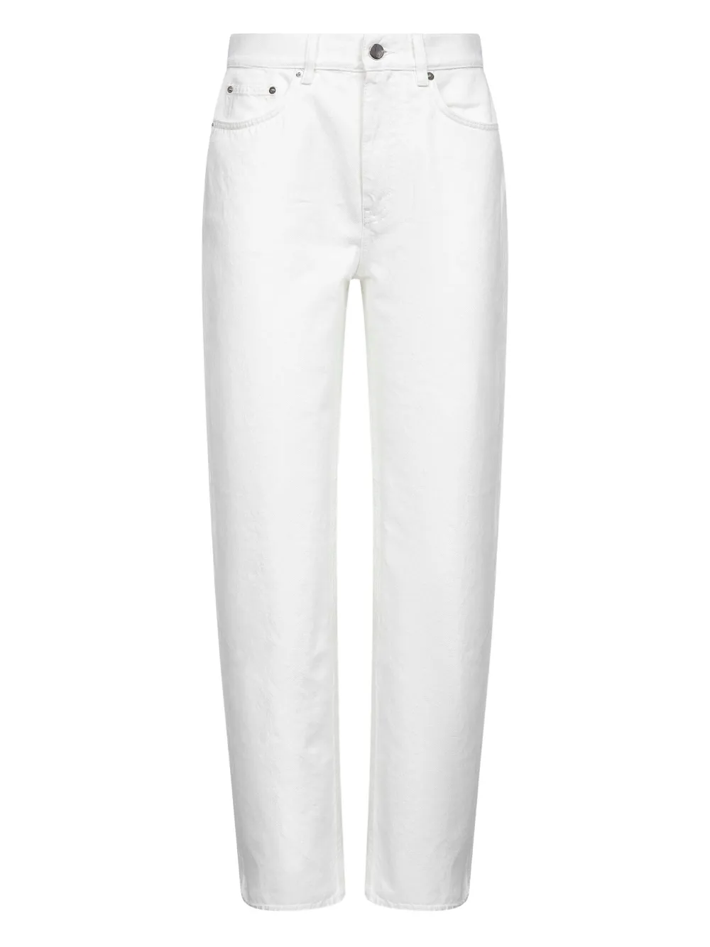Pantaloni denim LouLou de Saison alb, din bumbac, cu talie inalta, inchidere cu nasture si fermoar, model „5-pockets”, croiala straight fit si tiv drept. Potriviti pentru sezonul toamna/iarna. 100 bumbac.