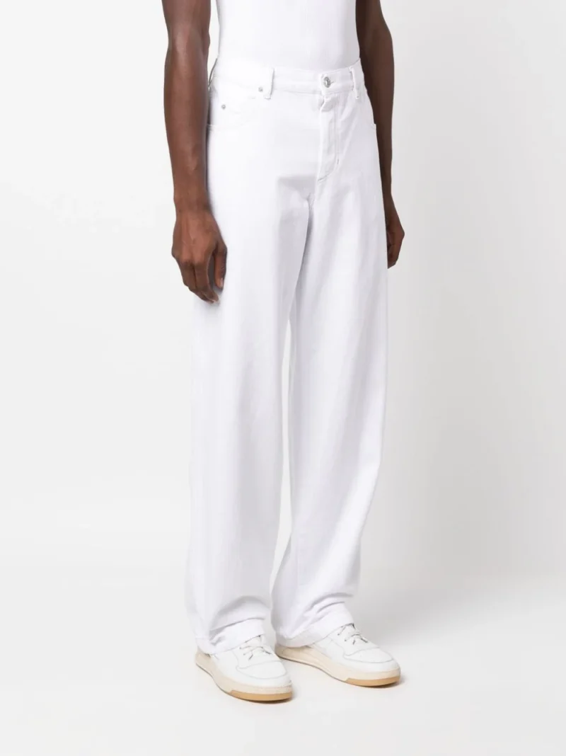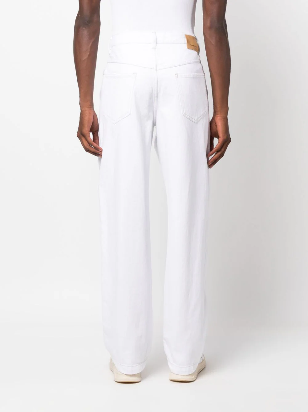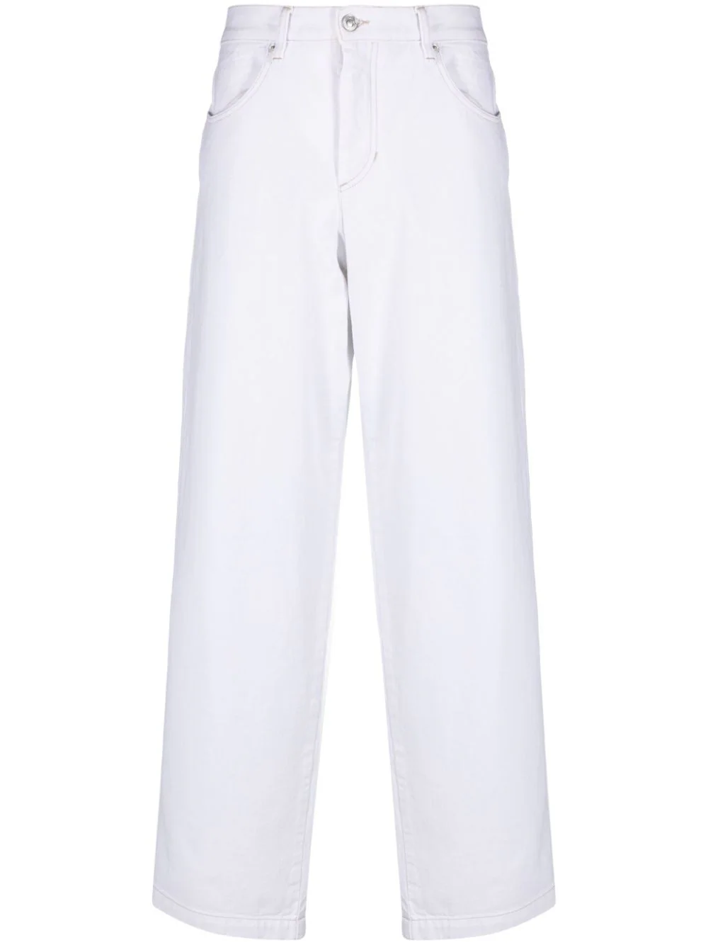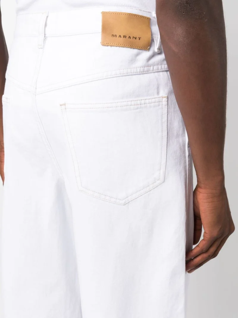 Pantaloni albi din bumbac denim, straight fit, cu inchidere nasture si fermoar, croiala “5-pockets”, eticheta logo Marant cusuta la spate si tiv drept. Potriviti pentru sezonul toamna/iarna. 100% bumbac denim; 65% poliester; 35% bumbac.