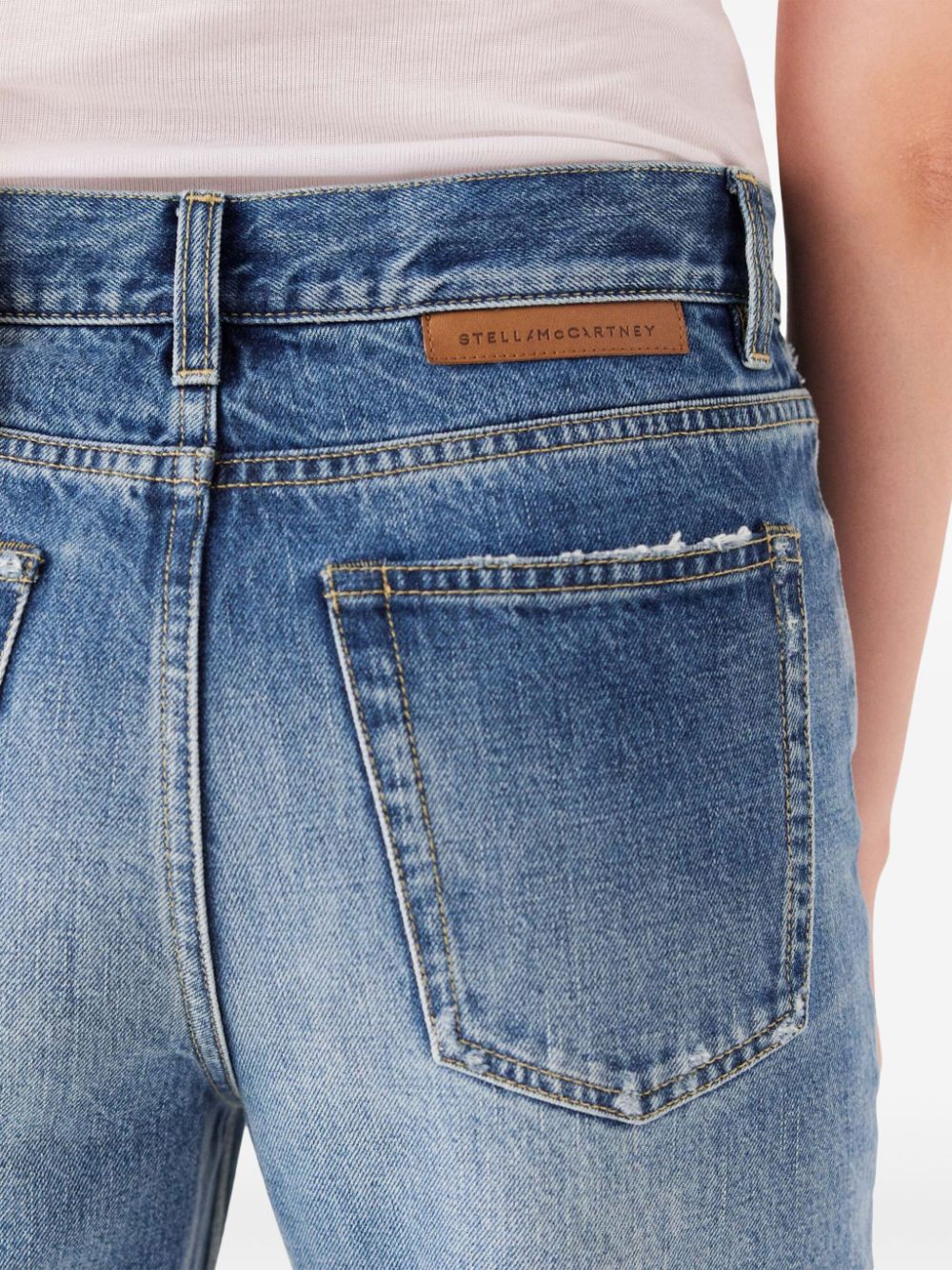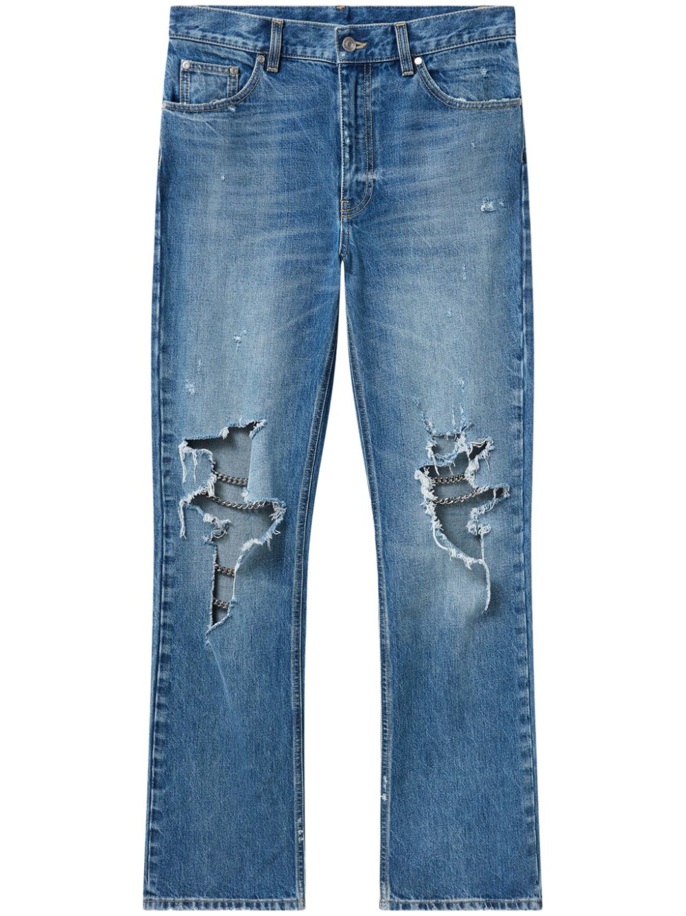 Pantaloni denim Stella McCartney Chain-Detailing Bootcut albastru, din bumbac denim, cu inchidere nasture di fermoar, model clasic „5-pockets”, eticheta din piele cu logo gravat la spate, aspect uzat, lungime bootcut si tiv drept. Potriviti pentru sezonul primavara/vara. 100% bumbac denim.