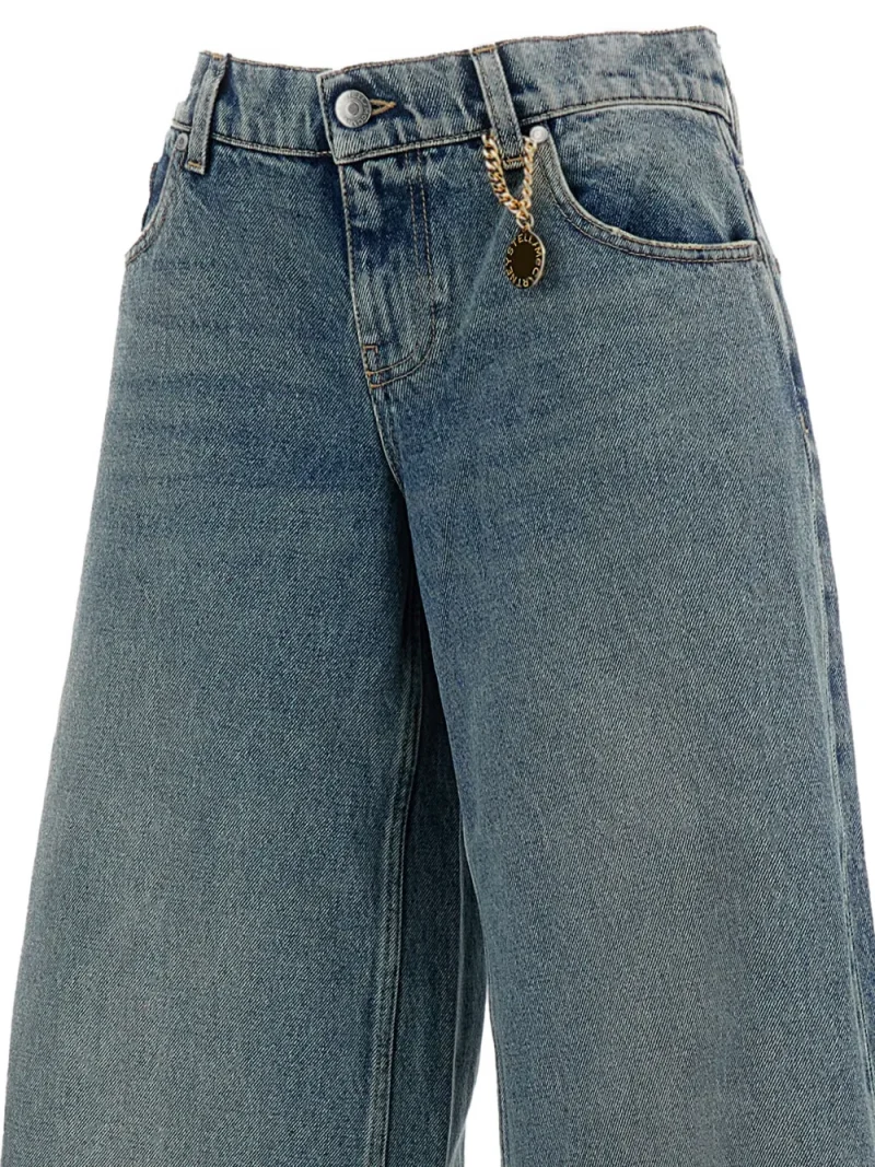 Pantaloni denim Stella McCartney Five-Pocket Wide albastru, wide-fit, din bumbac denim,cu inchidere nasture si fermoar, model „5-pockets”, eticheta logo la spate, charm atasat si tiv drept. Potriviti pentru sezonul primavara/vara. 100% bumbac.