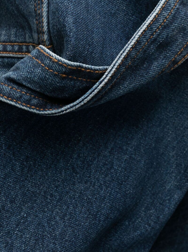 Pantaloni albastri din bumbac denim, wide fit, cu talie inalta, inchidere nasture si fermoar, buzunare laterale, buzunare la spate, eticheta logo Stella McCartney cusuta la spate, aspect decolorat si tiv drept. Potriviti pentru sezonul toamna/iarna. 100% bumbac denim.