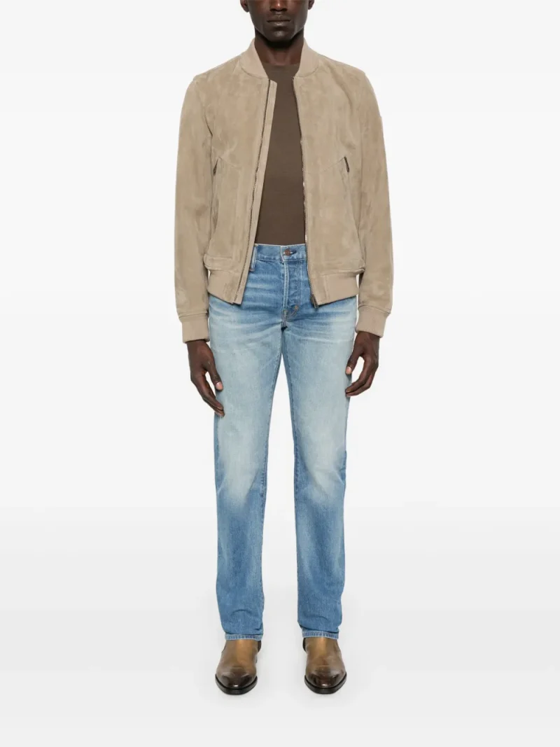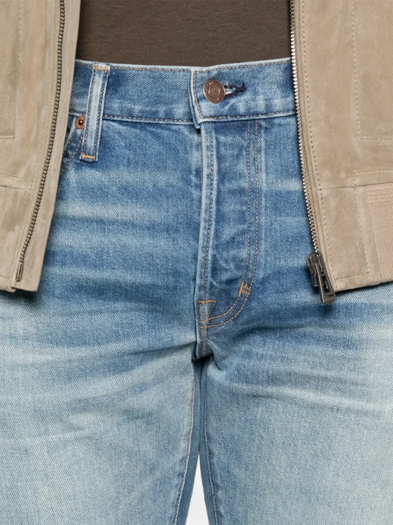 Pantaloni denim TOM FORD Faded-Effect albastru, din bumbac denim, cu inchidere nasture si fermoar, model „5-pockets”, eticheta din piele cu logo Ton Ford cusuta la spate, detalii cu aspect uzat si tiv drept. Potriviti pentru sezonul primavara/vara. 100% boss taurus; 98% bumbac; 2% poliuretan; 100% bumbac.