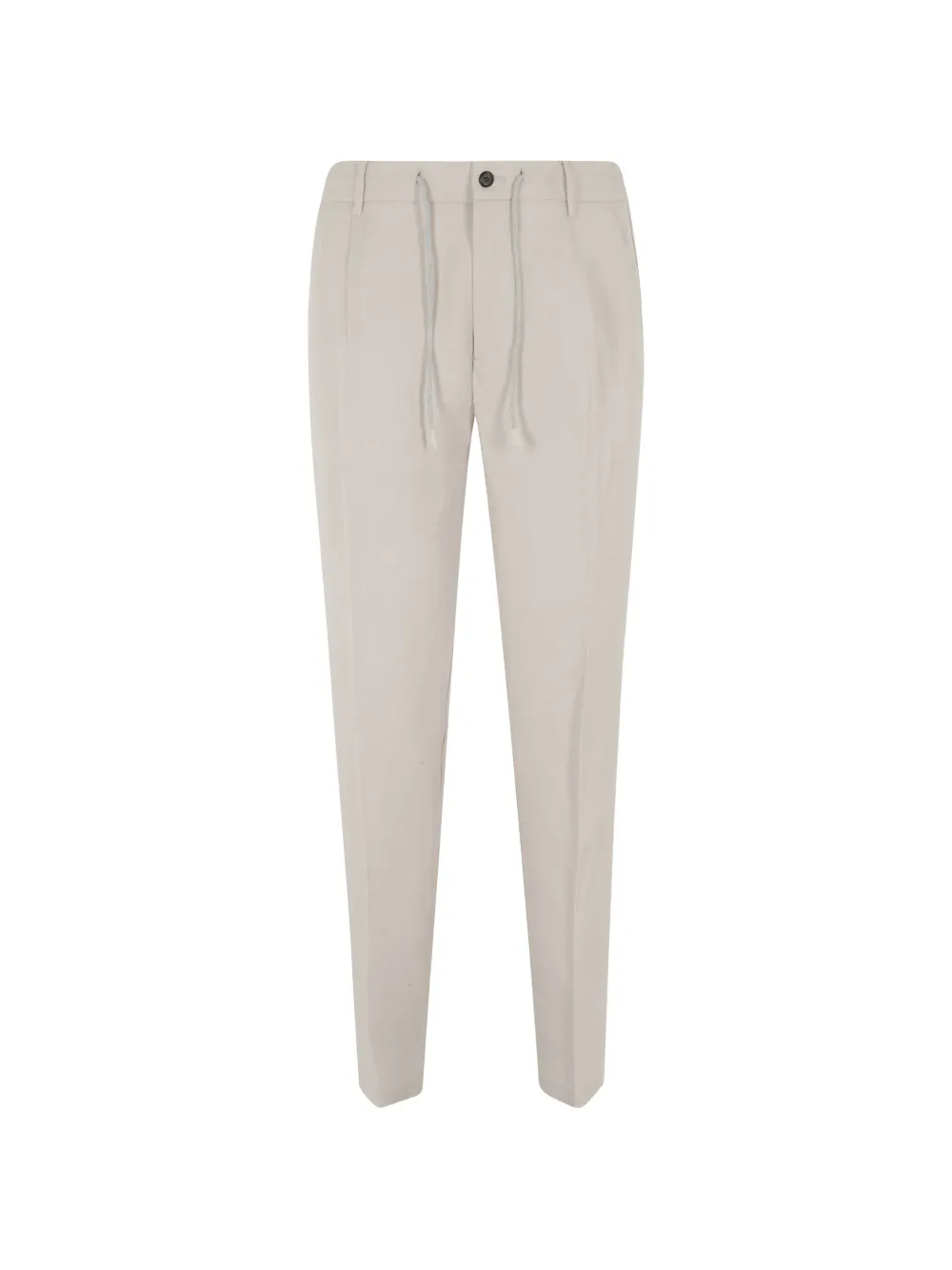 Pantaloni Eleventy Drawstring-Waist bej, cu talie medie, inchidere cu nasture si fermoar, snur in jurul taliei, buzunare laterale si tiv drept. Potriviti pentru sezonul primavara/vara. 68% lioncell; 32% in.