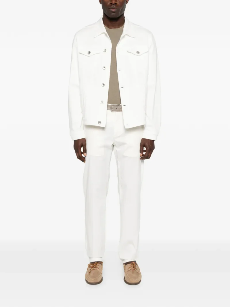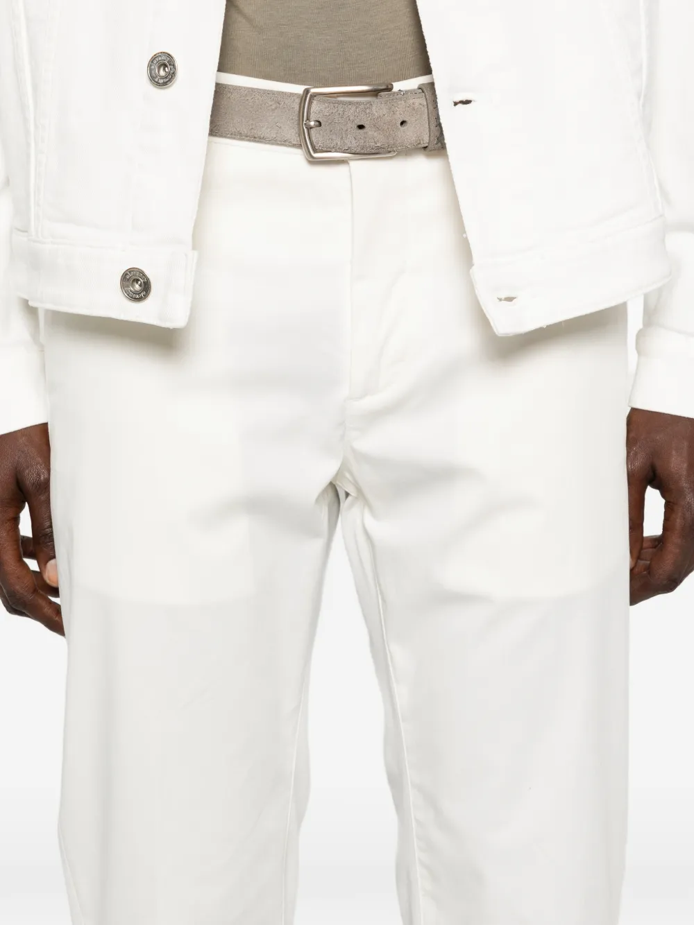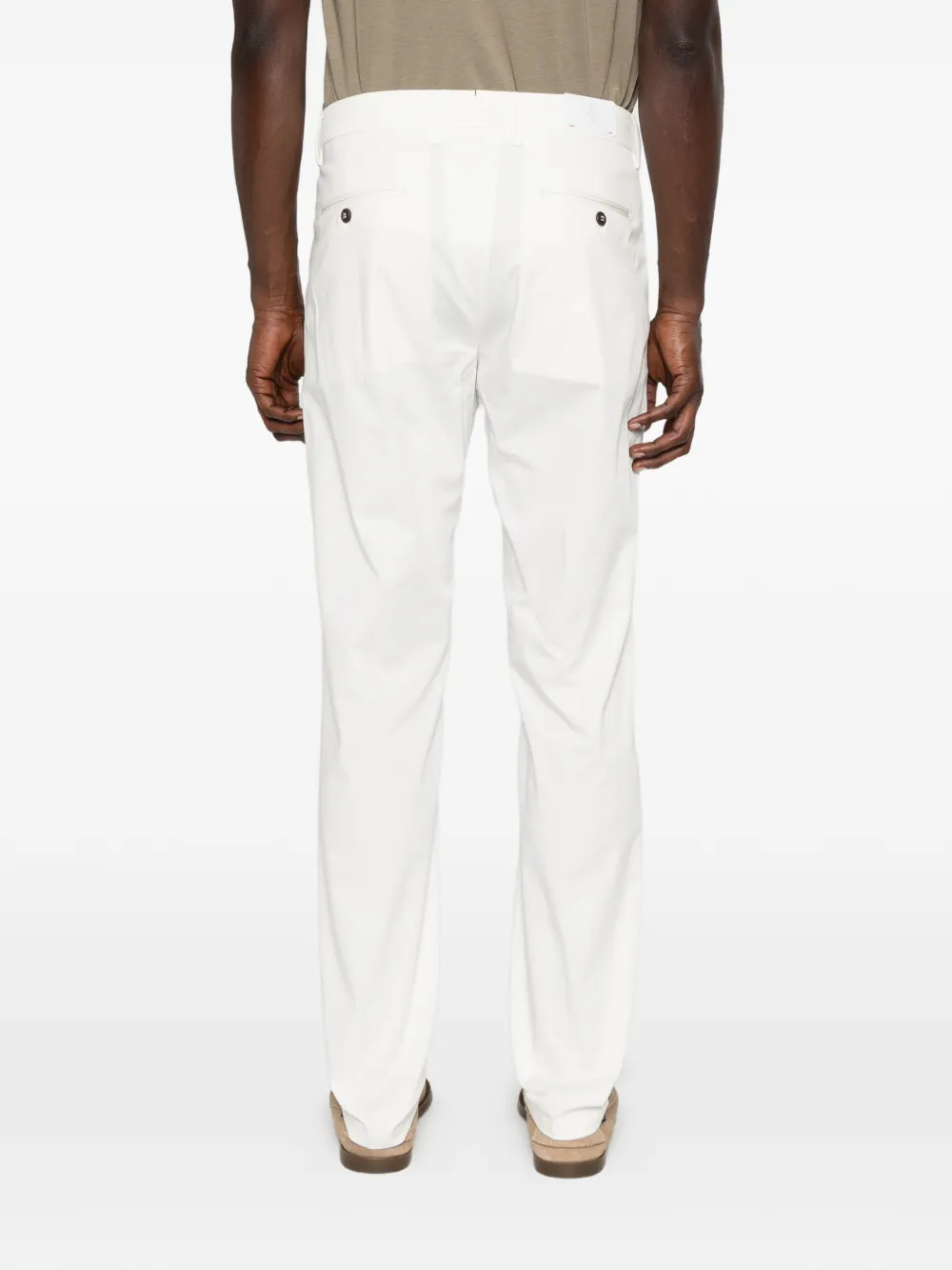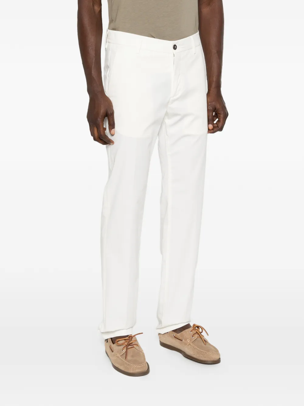 Pantaloni Eleventy a Coupe Droite alb, realizati din bumbac premium, cu inchidere nasture si fermoar, buzunare laterale, buzunare welt la spate si tiv drept. Potriviti pentru sezonul primvara/vara. 97% bumbac; 3% elastan.