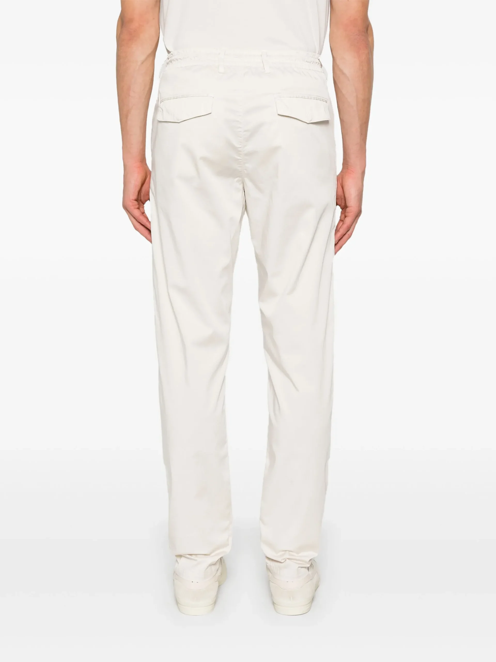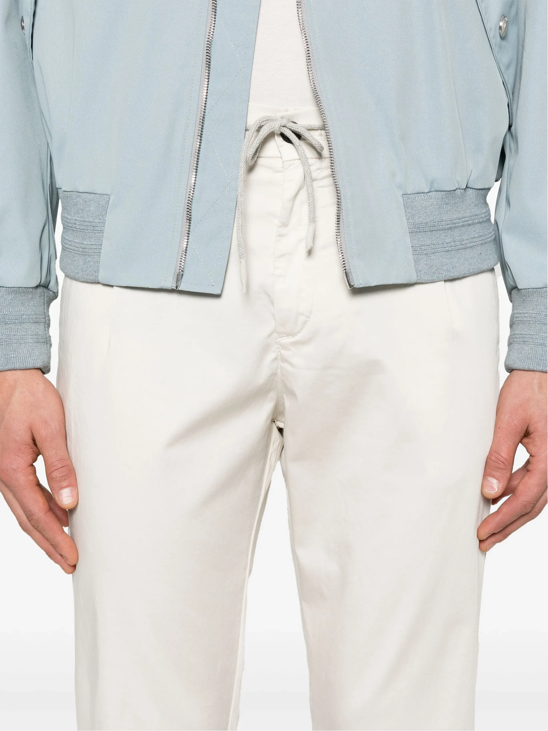 Pantaloni Eleventy Drawstring bej deschis, inchidere cu nasturi, buzunare laterale, buzunare la spate. Potriviti pentru sezonul primavara/vara. 96% bumbac 4% spandex