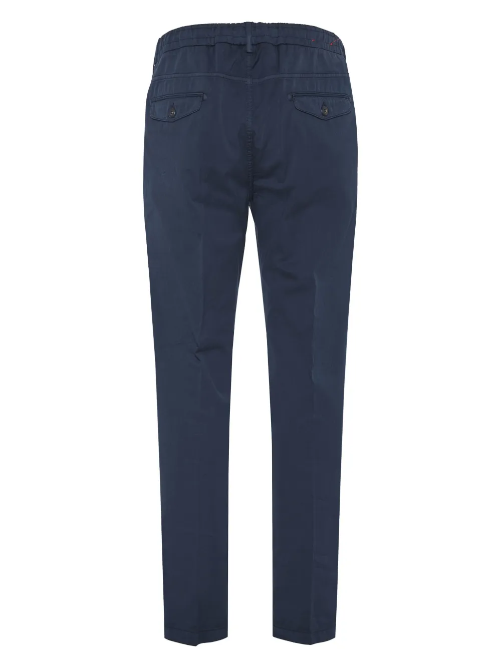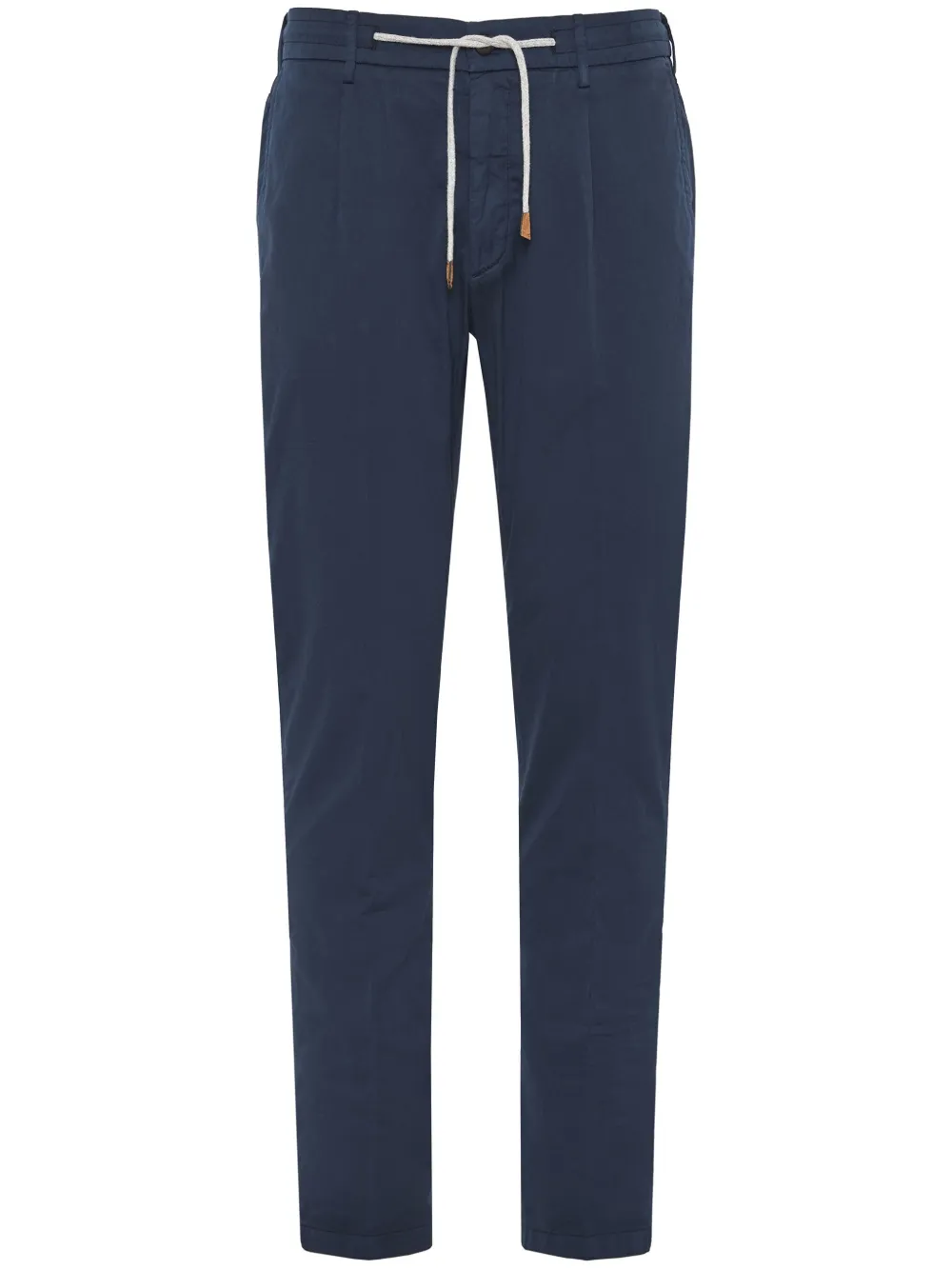 Pantaloni Eleventy Drawstring Straight-Leg bleumarin, din bumbac, cu inchidere nasture si fermoar, buzunare laterale, buzunare cu clapeta la spate, snur in jurul taliei si tiv drept. Potriviti pentru sezonul primavara/vara. 88% bumbac; 10% matase; 2% elastan.