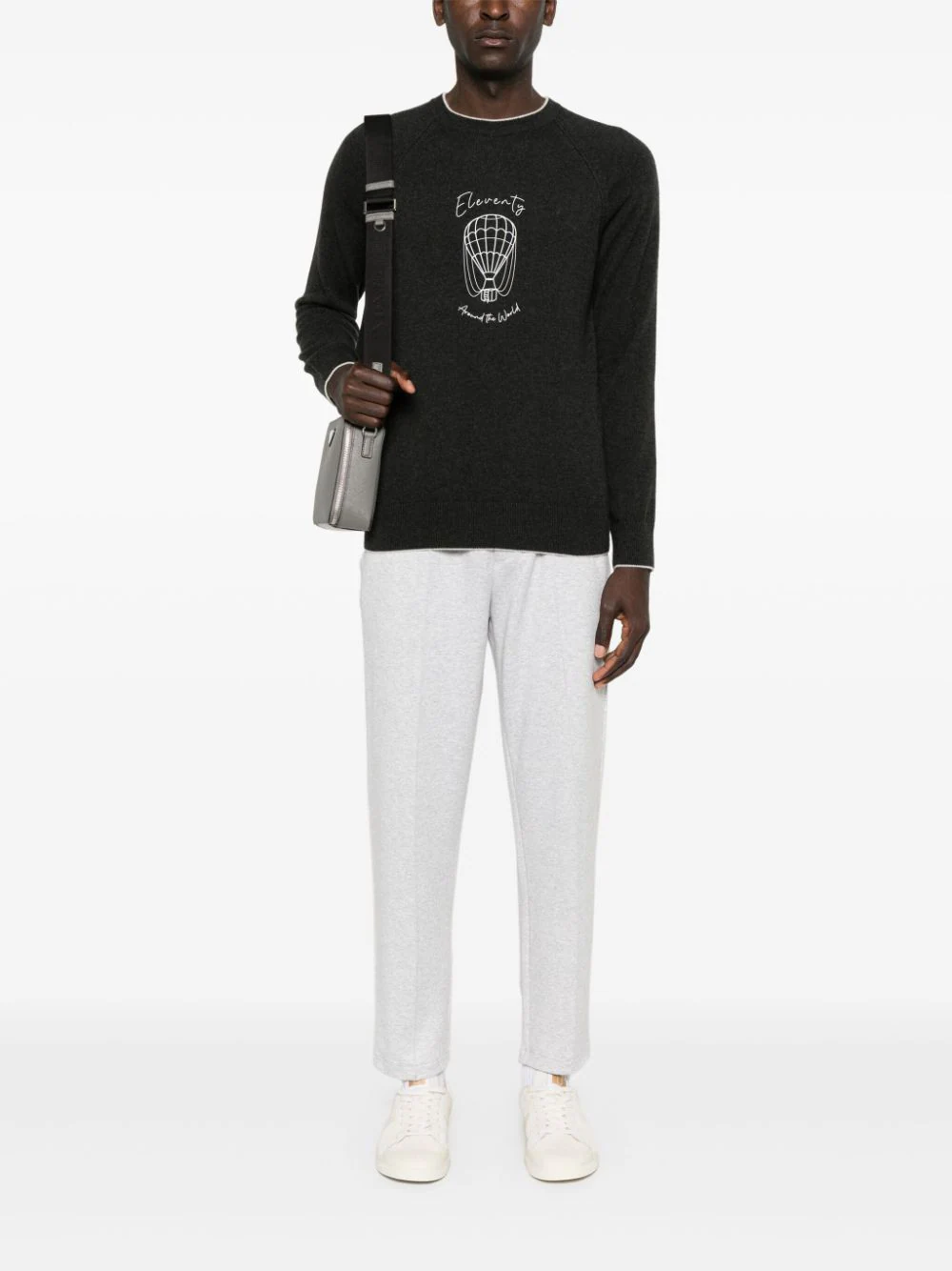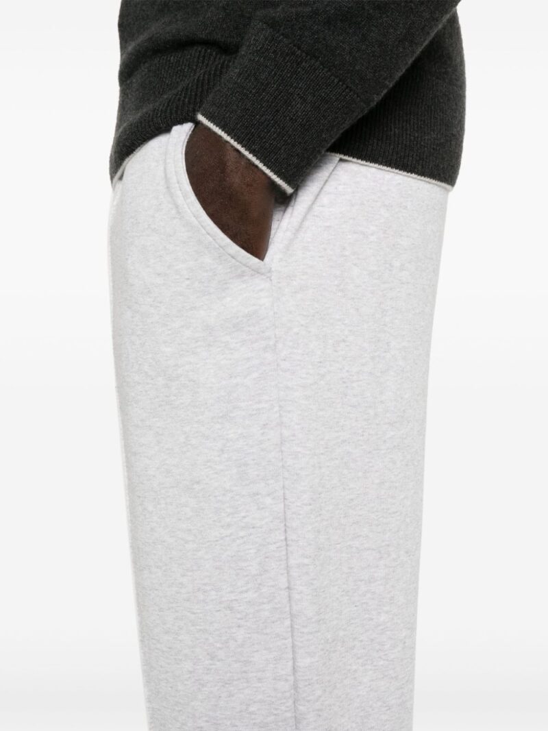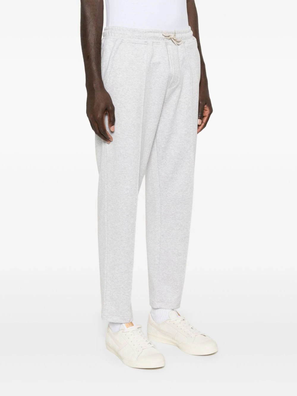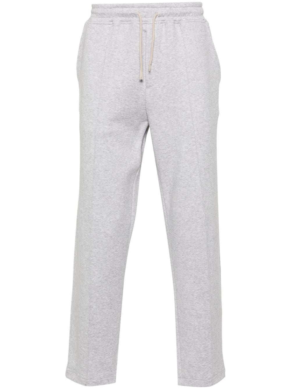 Pantaloni Eleventy Raised-Seam Track gri, sport, din bumbac cu efect melange, inchidere cu talie elastica si snur, buzunare laterale, cusaturi verticale pe partea din fata si tiv drept. Potriviti pentru sezonul toamna/iarna. 65% bumbac; 28% poliamida; 4% casmir; 3% matase.