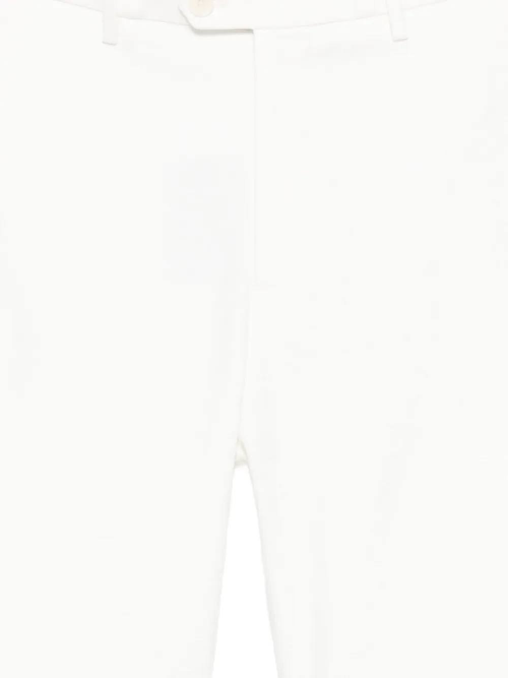 Pantaloni ETRO Button alb, realizati din bumbac, cu inchidere nasture si fermoar, buzunare laterale si welt la spate, logo brodat si tiv drept. Potriviti pentru sezonul primavara/vara. 94% bumbac; 4% elastan.